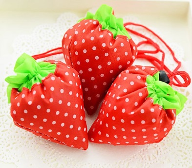 使わない時はコンパクトに果実型になるいちごのエコバッグです。