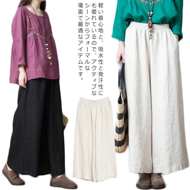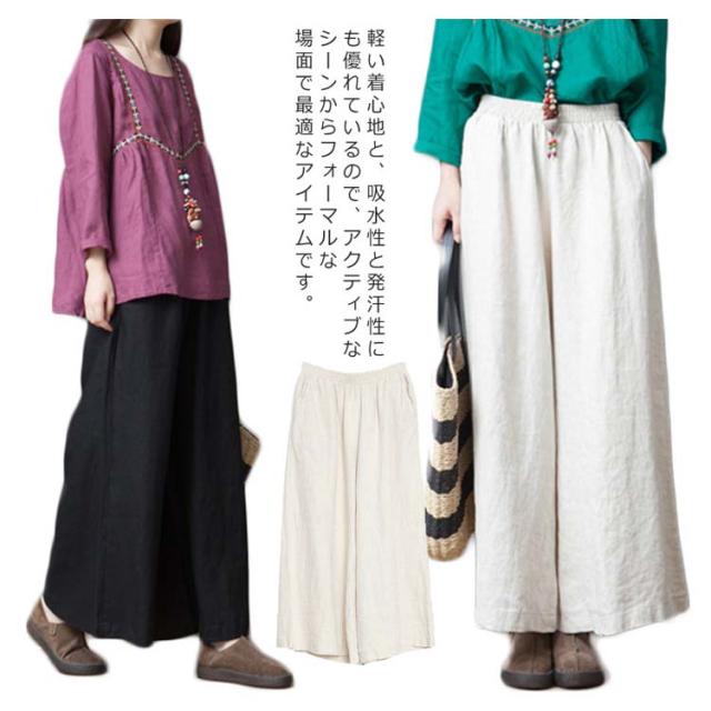 ワイドパンツ ロングパンツ ガウチョパンツ リネンパンツ レディース 綿麻 ゆったり リネン アンクルパンツ 夏 カジュアルアンツ 森ガール系 新作