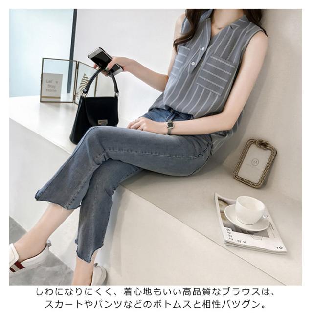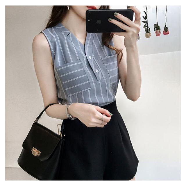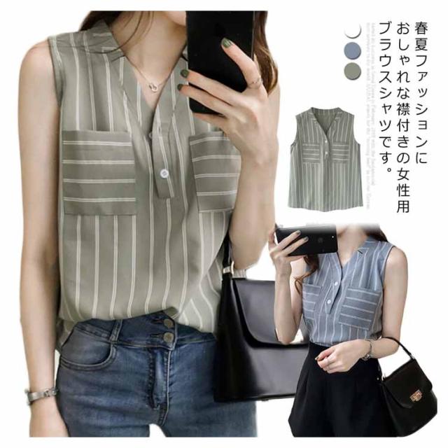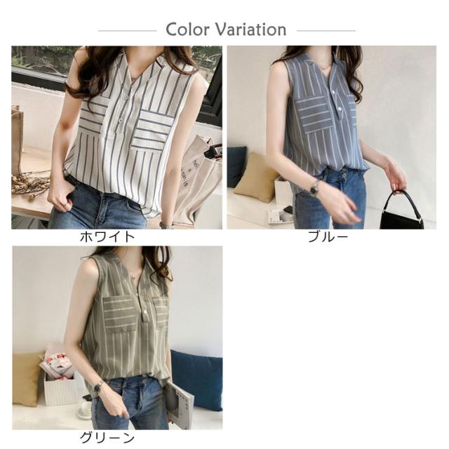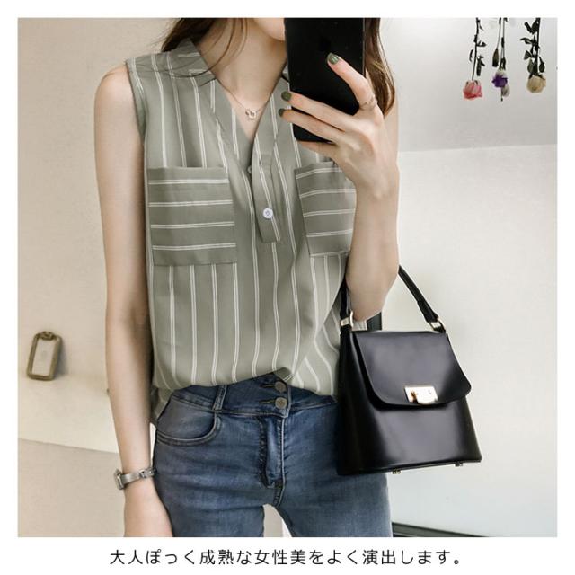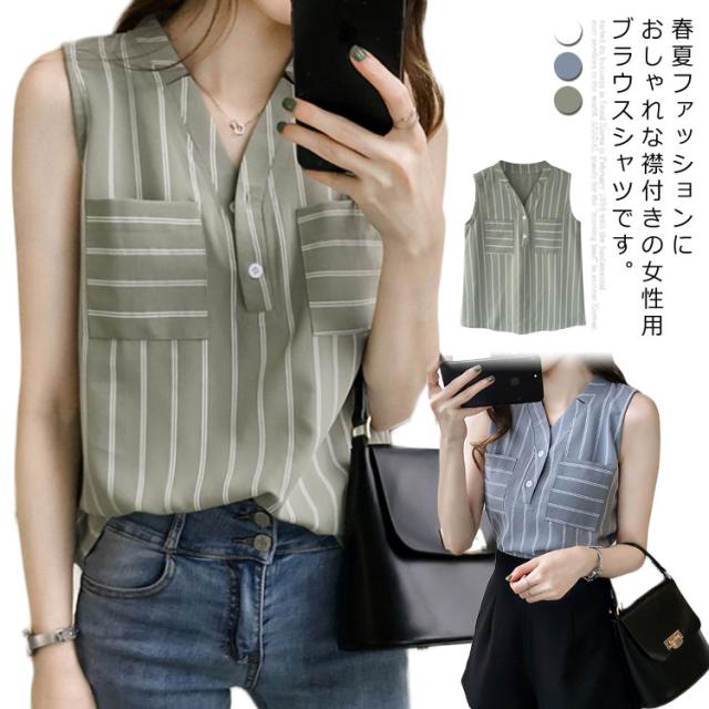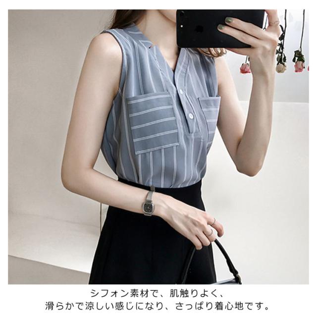 シフォンブラウス ノースリーブ vネック ストライプ柄 レディース タンクトップ 夏 ノースリーブシャツ シフォン 涼しい ゆったり 韓国風 通勤 OL 新作