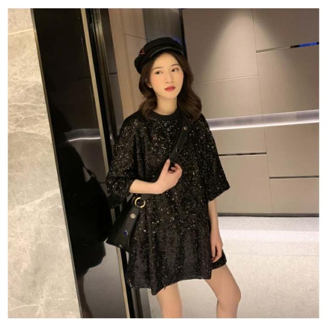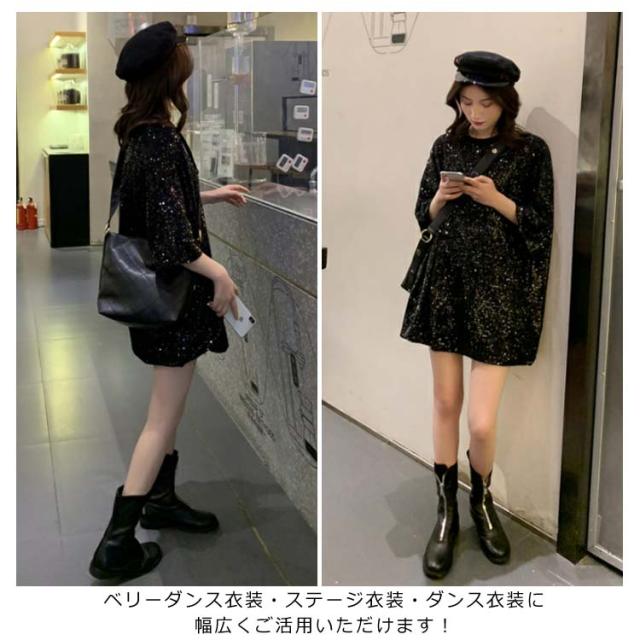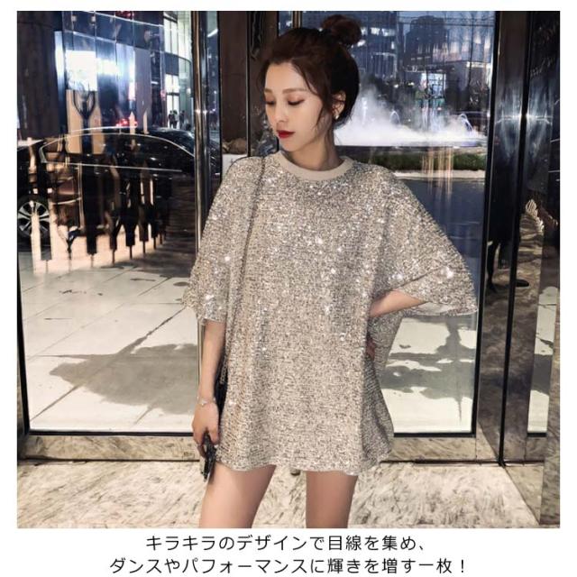 スパンコール Tシャツ 半袖Tシャツ クールネック キラキラ Tシャツ レディース スパンコール トップス ダンス衣装 ダンスウェア パーティー コスチューム スパンコール衣装 イベント衣装