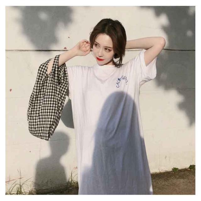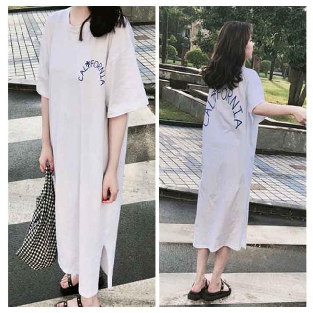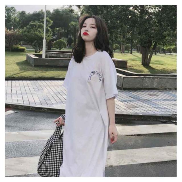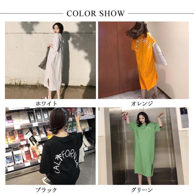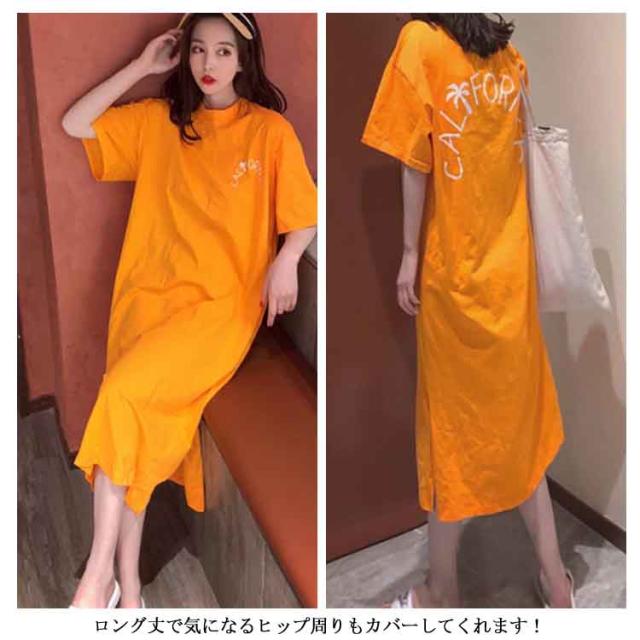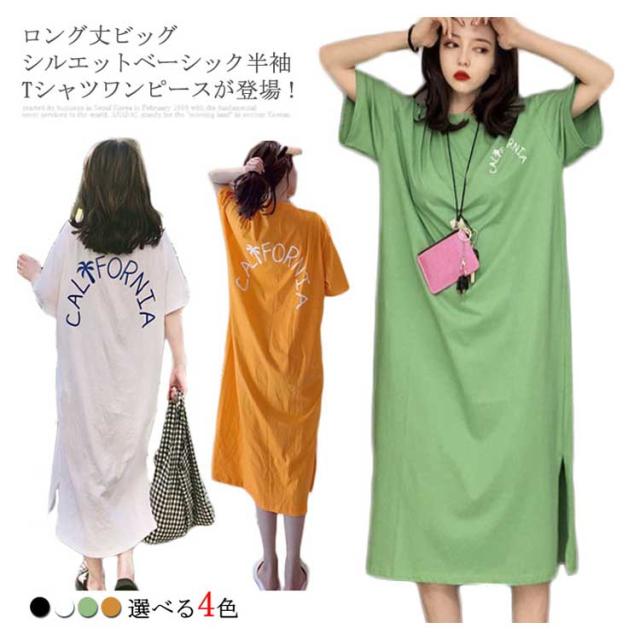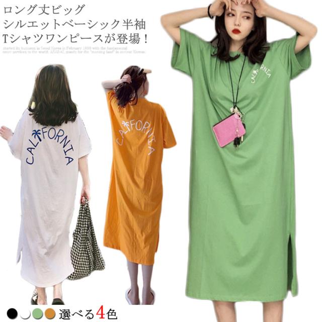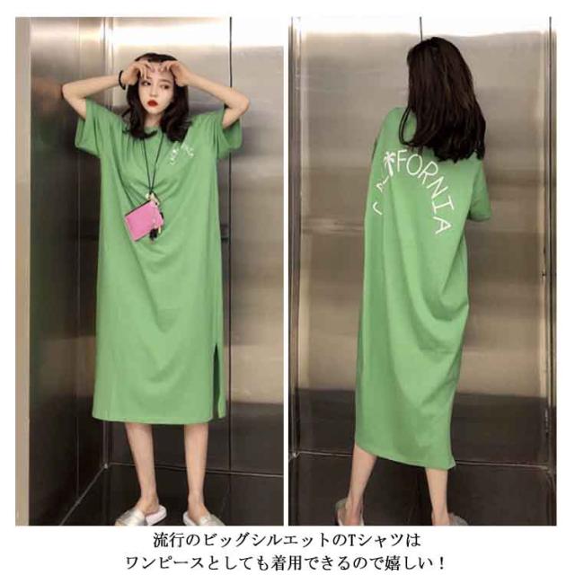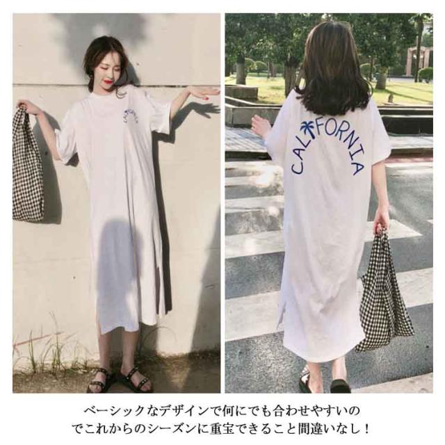 ロング丈Tシャツ 半袖 Tシャツ レディース Tシャツ ワンピース ロング丈 半袖 ワンピース 韓国ファッション ロングワンピース 可愛い送料無料
