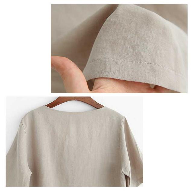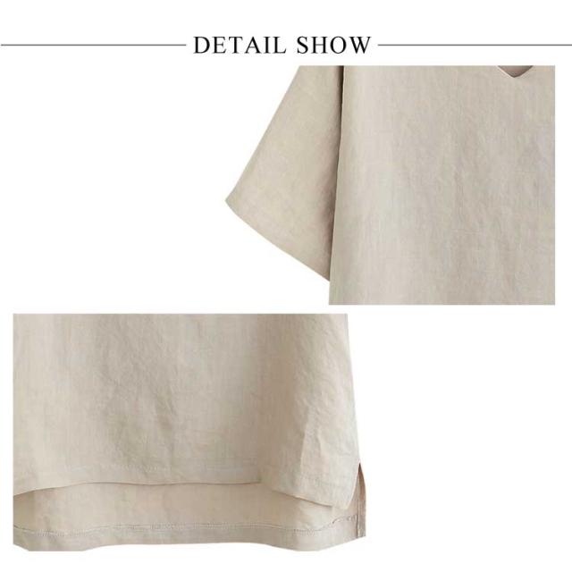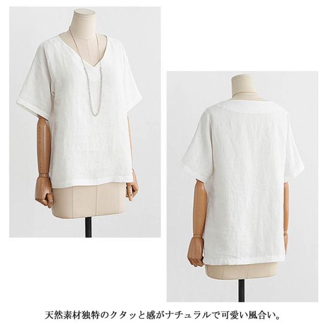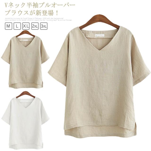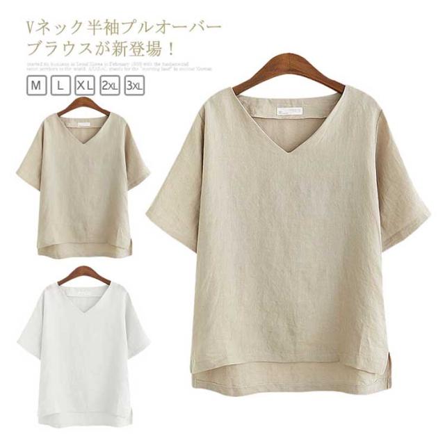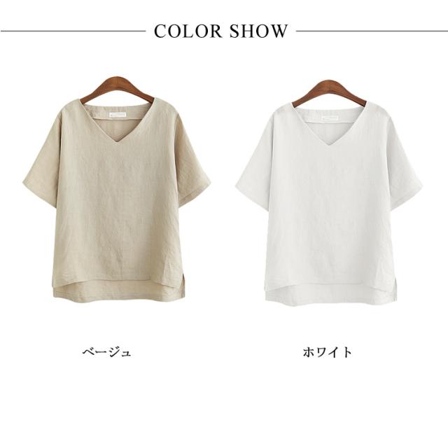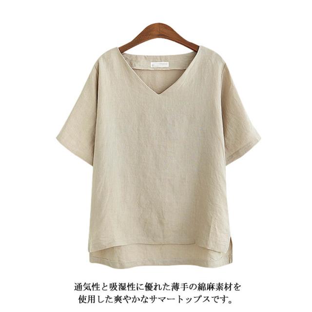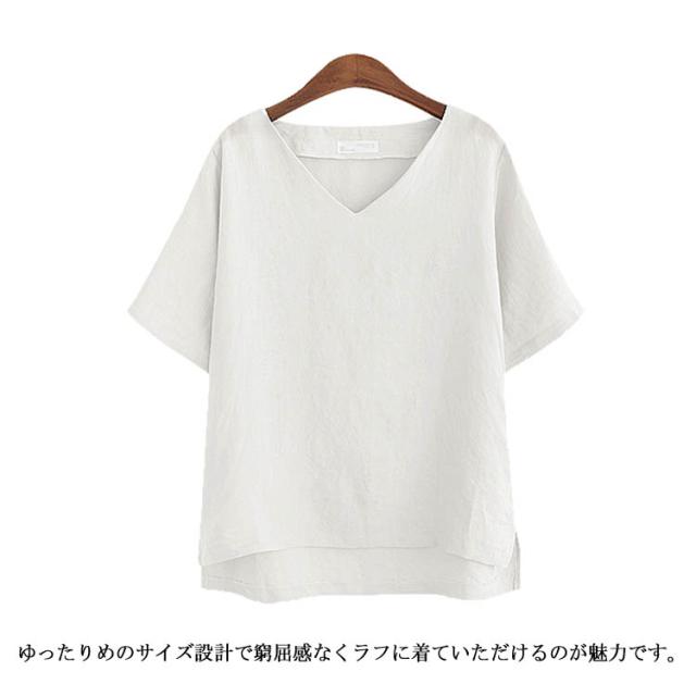 Vネック トップス リネン トップス 綿麻 Tシャツ ブラウス 半袖 チュニック レディース ナチュラル ゆったり 着痩せ 可愛い