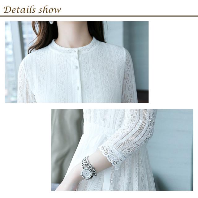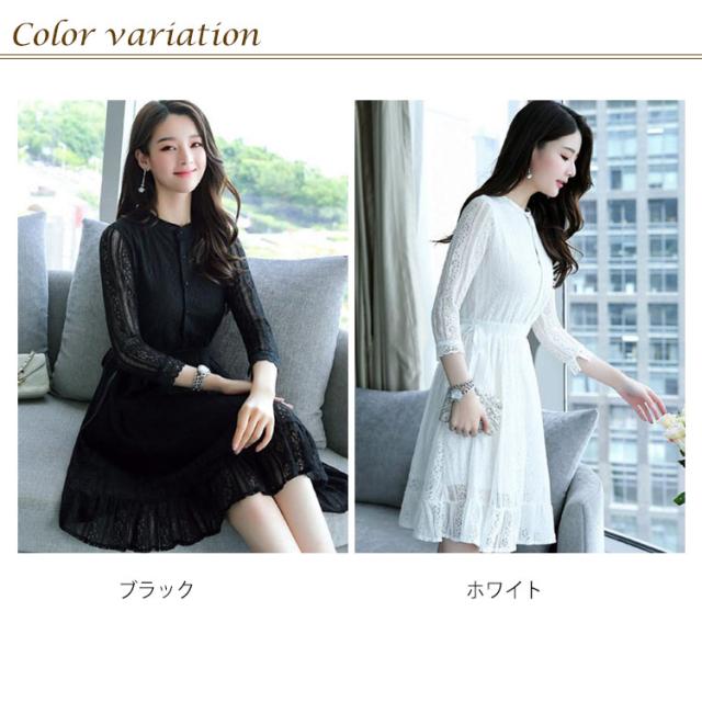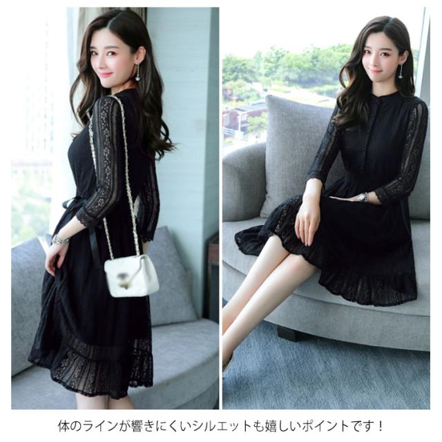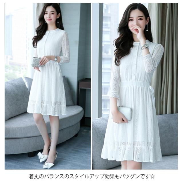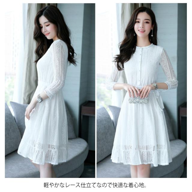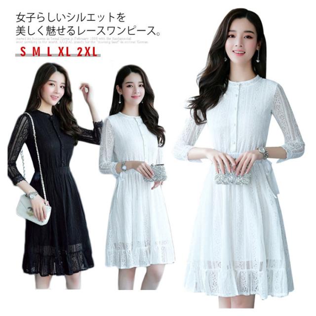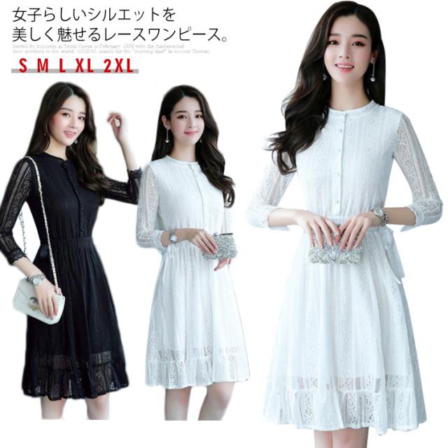 レースワンピース レディース ワンピース パーティードレス 7分袖 上品 結婚式 ドレス 花柄レース Aライン 着痩せ ミモレ丈 ロングワンピース エレガント送料無料