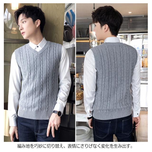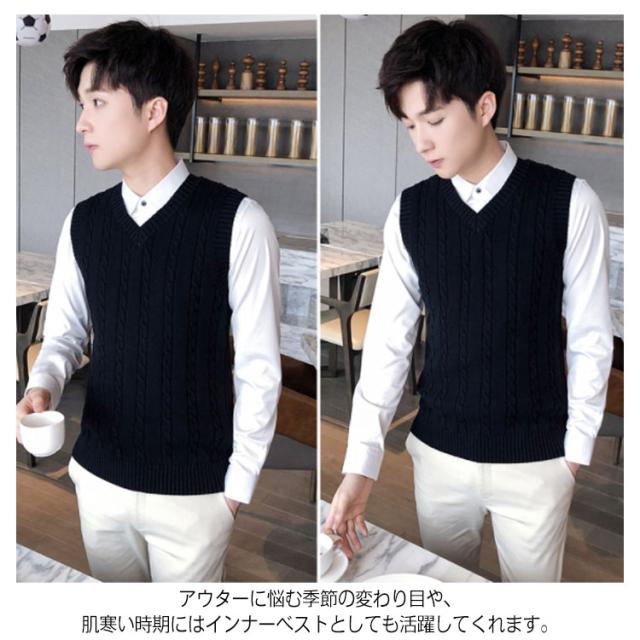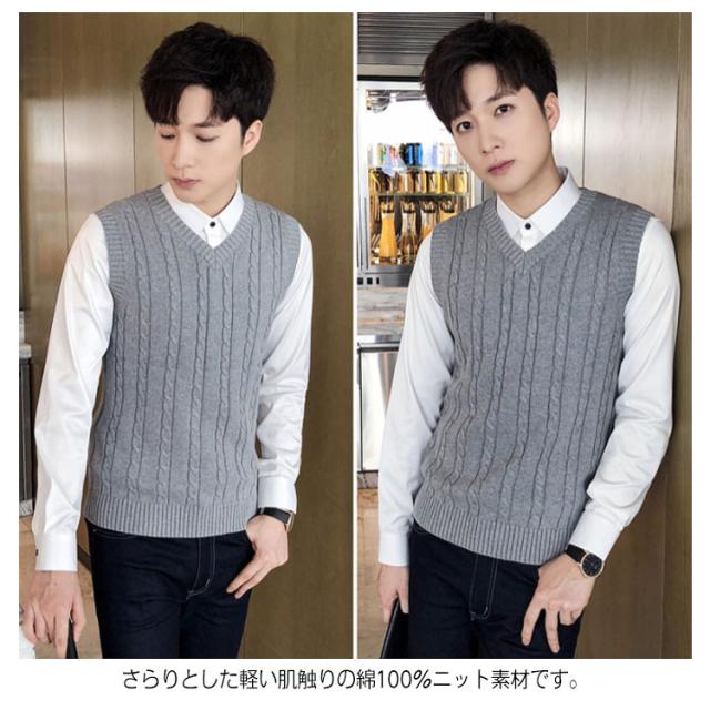 ベスト メンズ ニットベスト 編み込み カジュアル Vネック ケーブル 紳士服 プルオーバー トップス メンズセーター お洒落 大きいサイズ コットン 春秋冬物