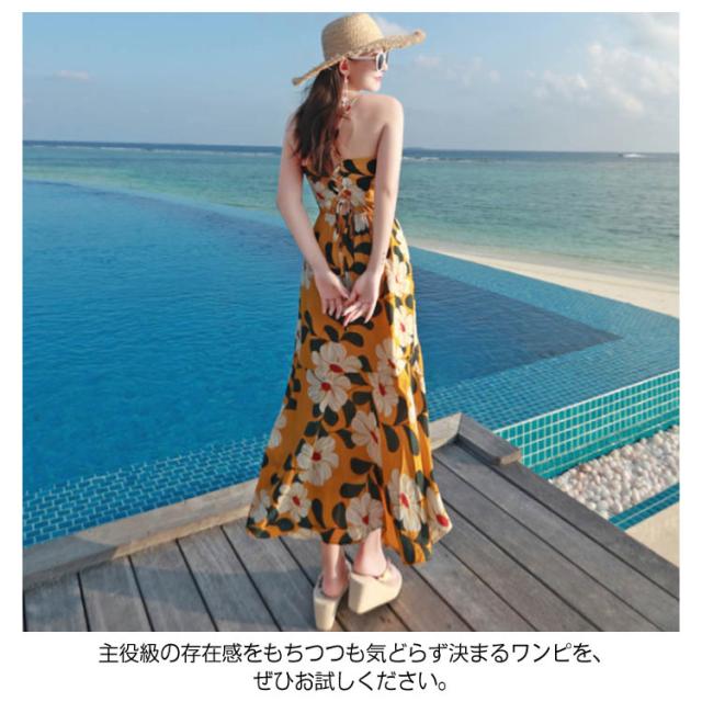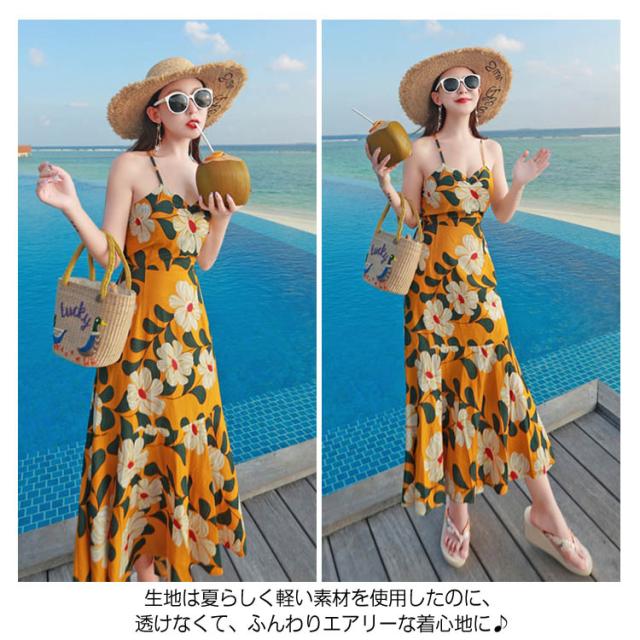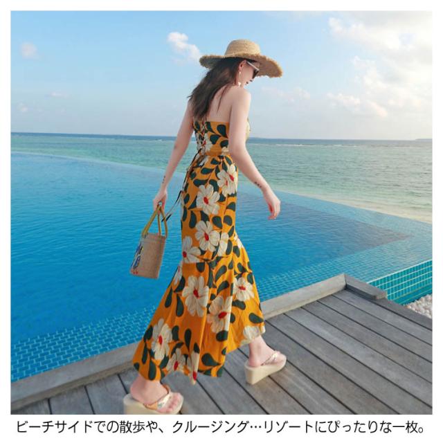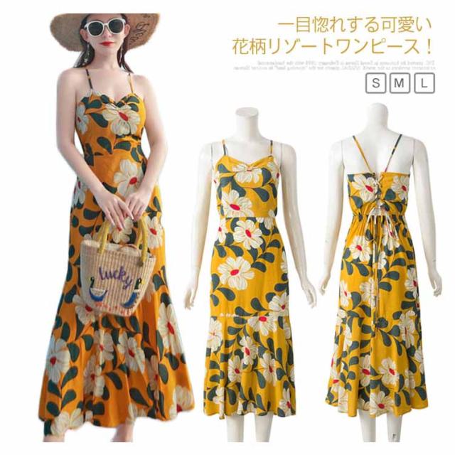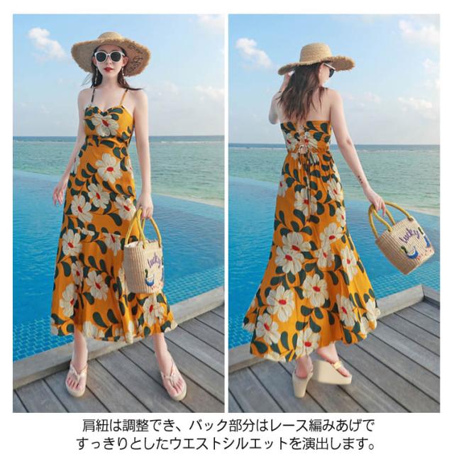 《》バックレース編み上げ ロングキャミソールワンピース 夏ワンピース 夏 リゾートワンピース ビーチワンピース マキシワンピース マキシワンピ 花柄 大人 セクシー送料無料