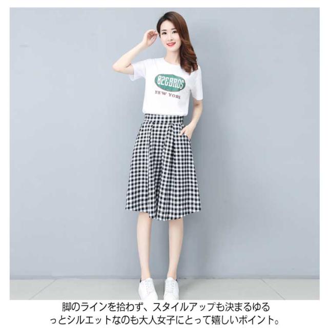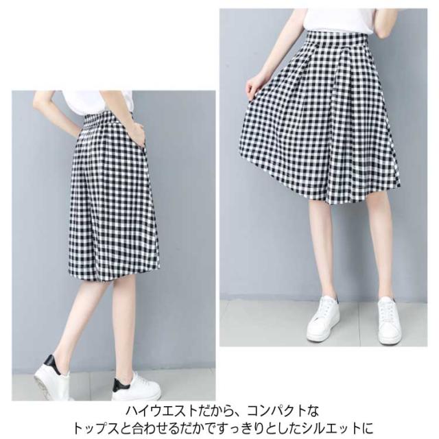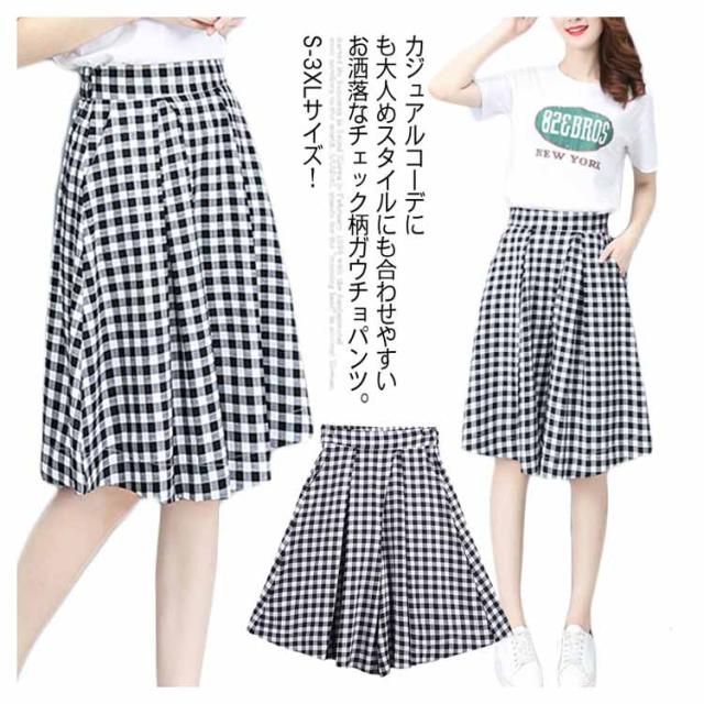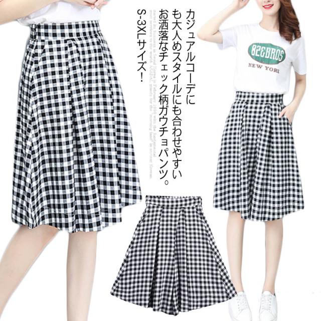 《》S-3XLサイズ!チェック柄 ワイドパンツ スカチョ ガウチョパンツ 5分丈 フレアパンツ キュロットスカート ガウチョ パンツ ギンガムチェック ボトムス レディース 春 夏