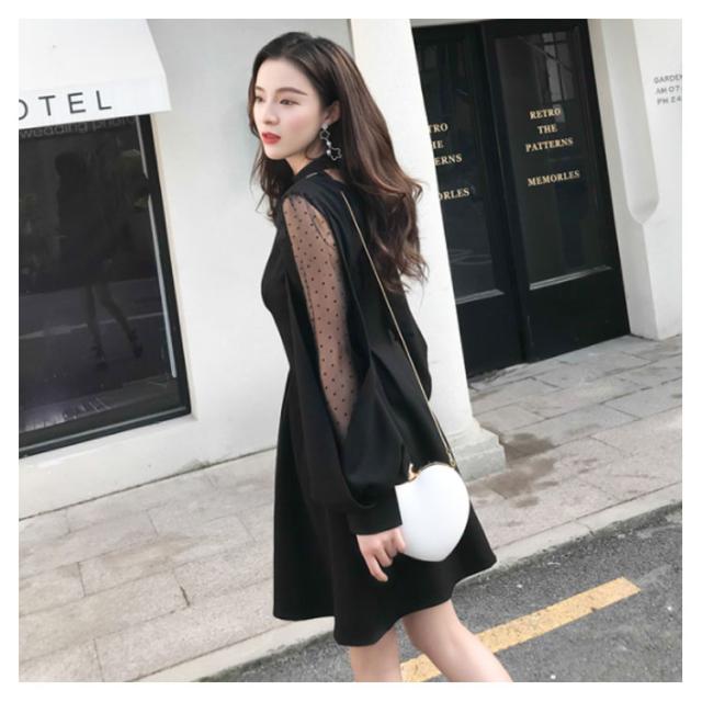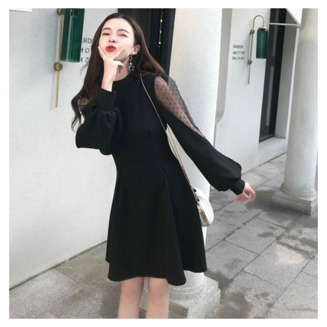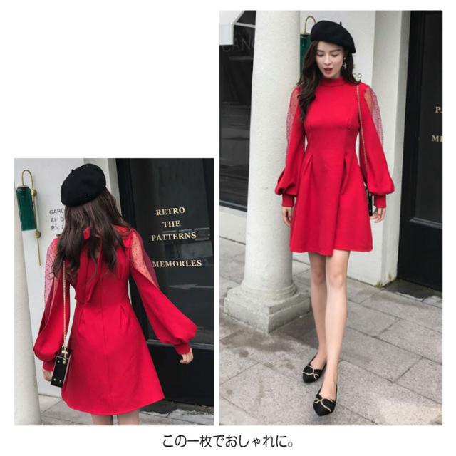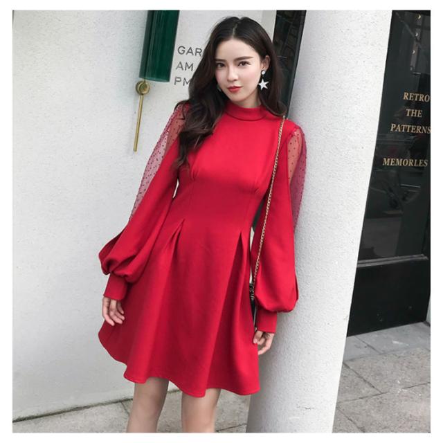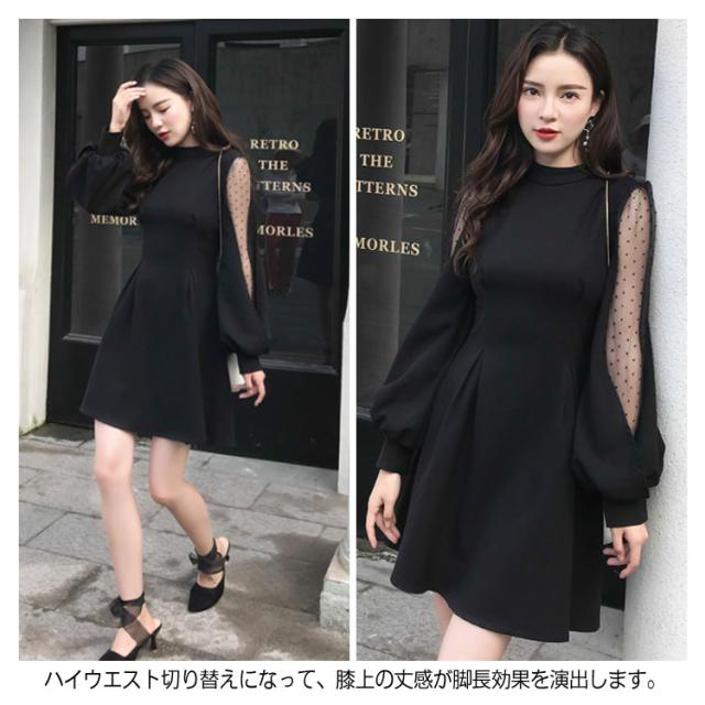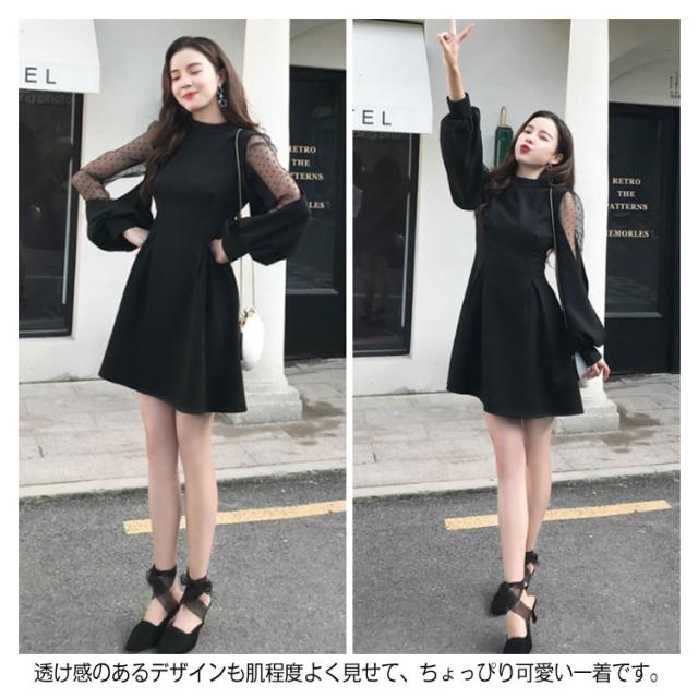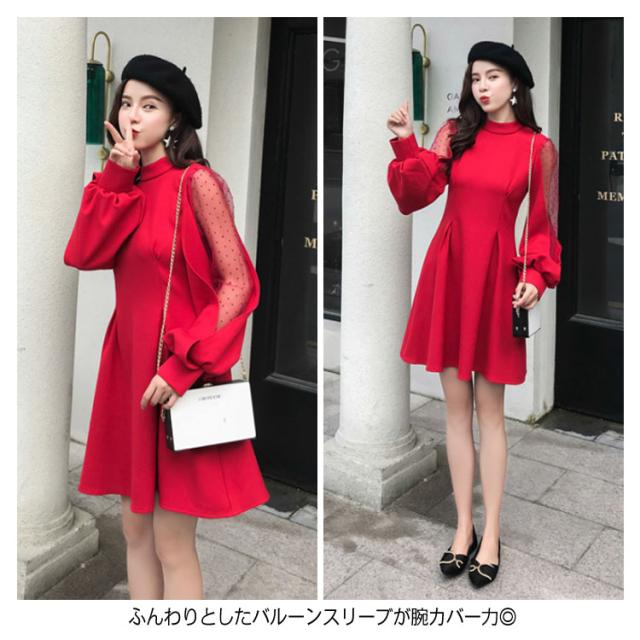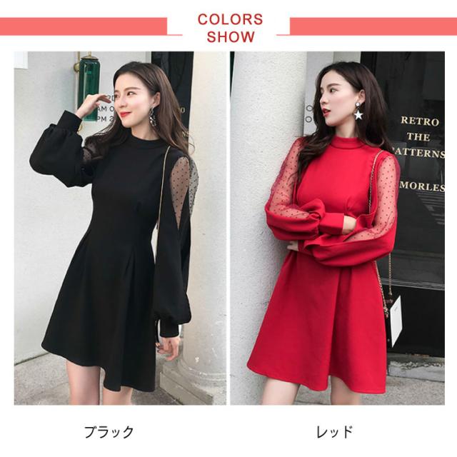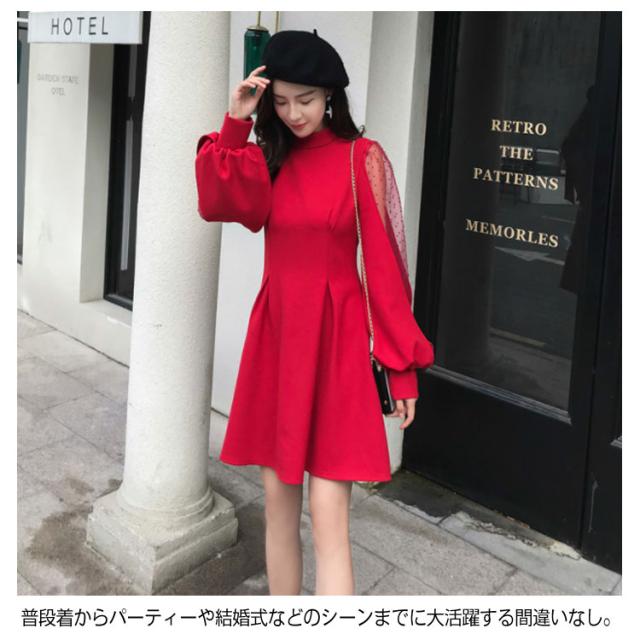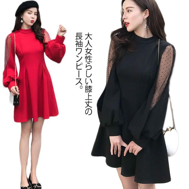 ワンピース バルーンスリーブ 長袖ワンピース バルーンスリーブワンピース 袖透け ワンピース ふんわり 可愛い ハイウエスト パーティードレス 膝上丈 パーティー 結婚式 美脚 春 夏送料無料