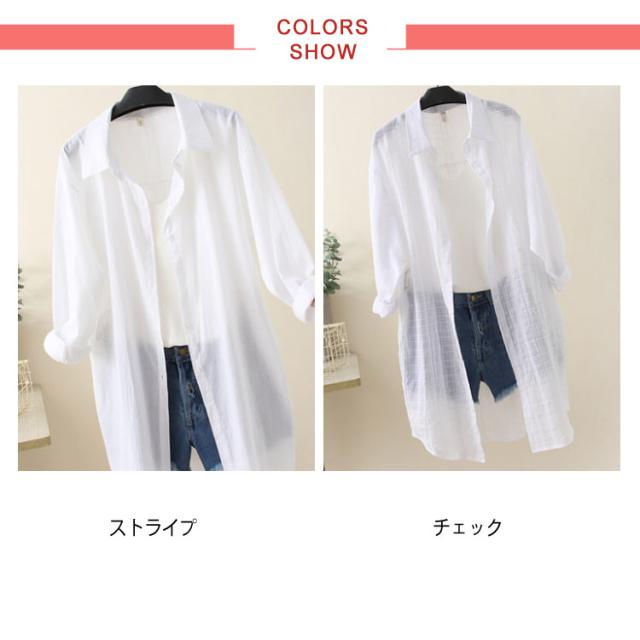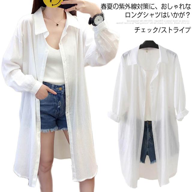 《》チェック/ストライプ ロングカーディガン レディース ロングシャツ ロング羽織り サマーカーディガン ロング丈 羽織り カーディガン シャツ トップス ライトアウター 日焼け防止 UV対策 白 春 夏送料無料