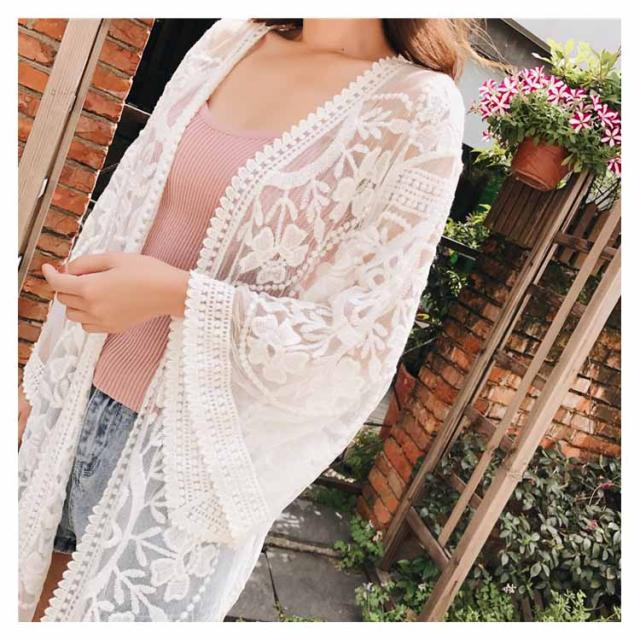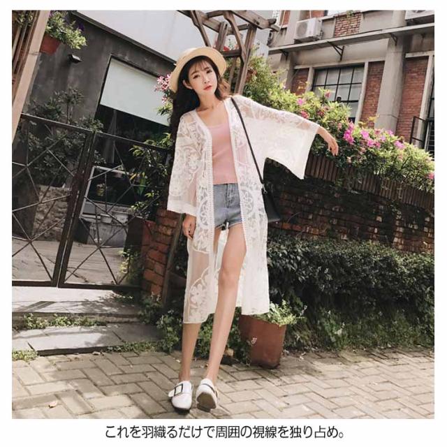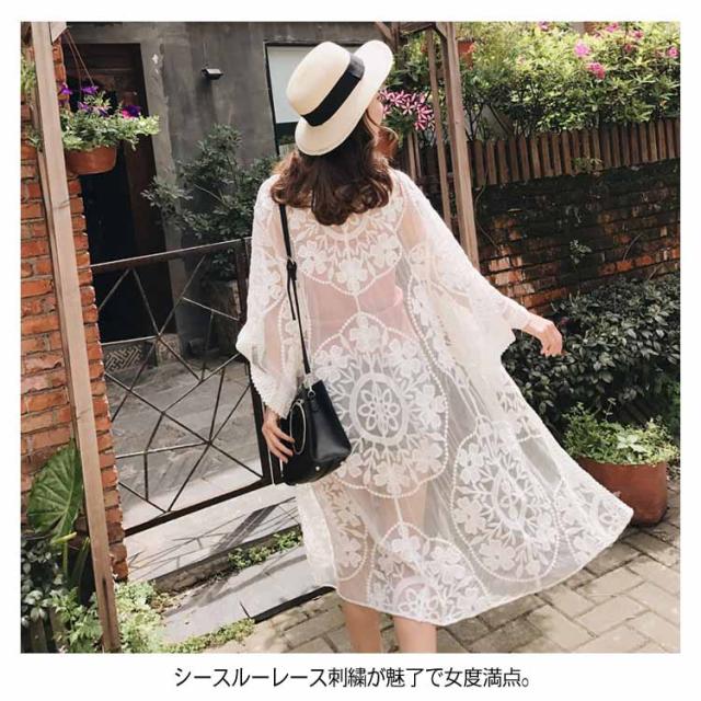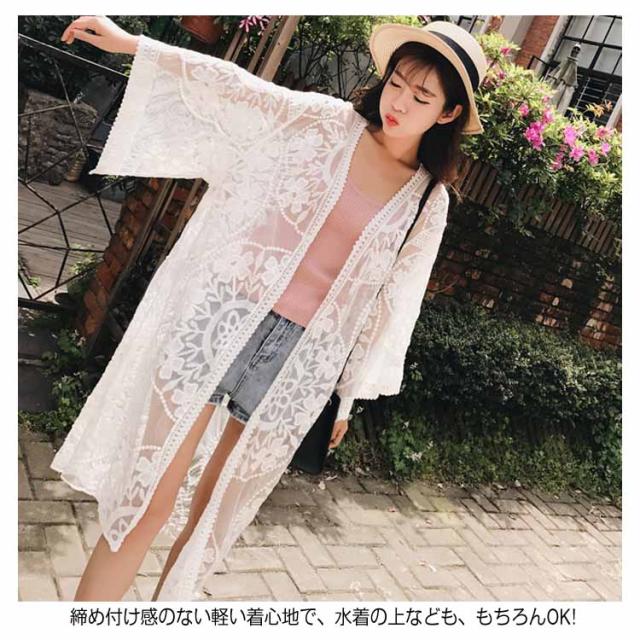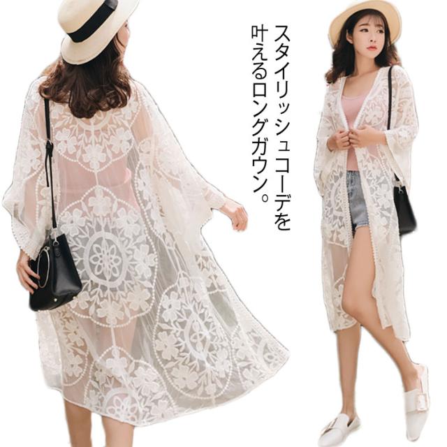 《》夏 アウター レース カーディガン カーデ レースガウン レースカーディガン 羽織り ロング ガウン 刺繍 きれい レディース カジュアル 水着の上 リゾート プール 海送料無料