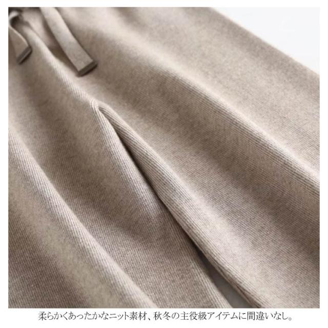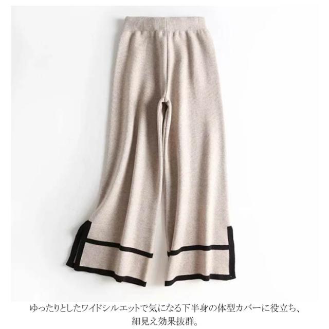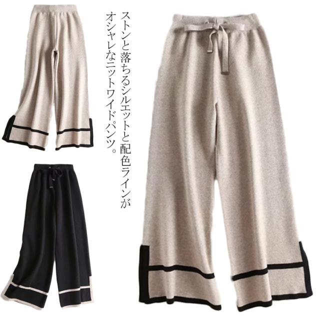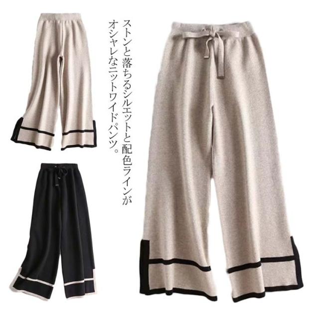 差し色ラインがオシャレなワイドニットパンツ。 ハイウエスト ニット ワイドパンツ ワイド パンツ ロング丈 秋冬