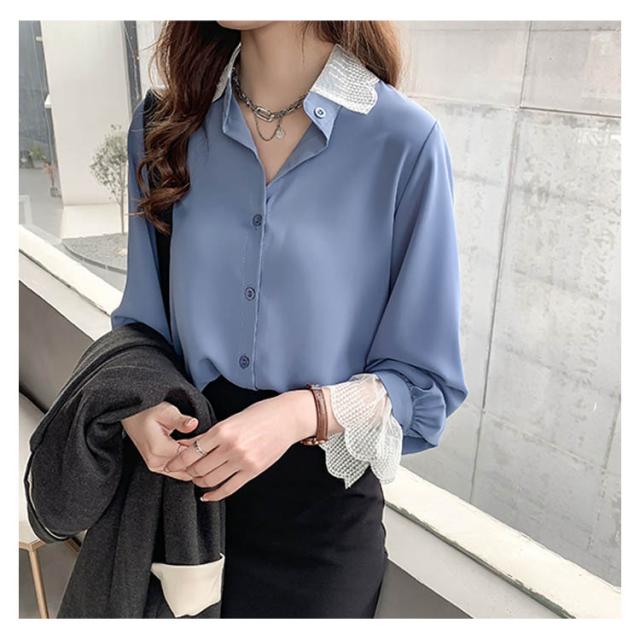まるでレースインナーをレイヤードしているよう♪ フレア袖 可愛い オシャレ フェミニン とろみシャツ シフォンシャツ 通勤 キレイめ