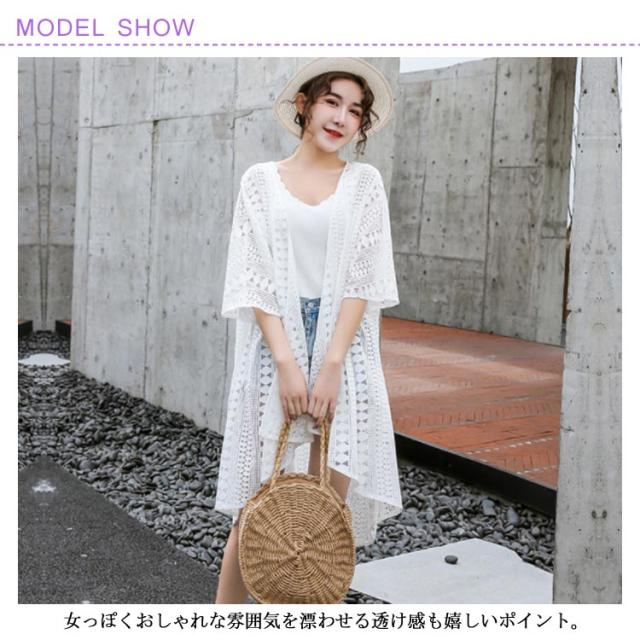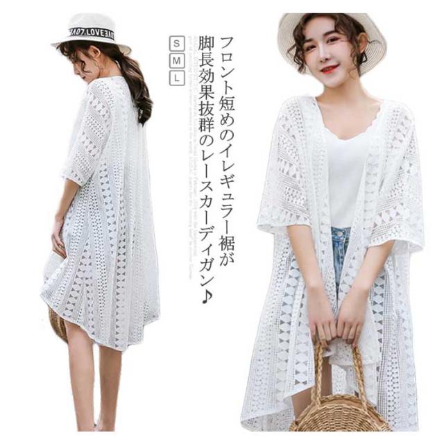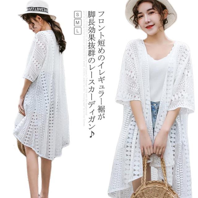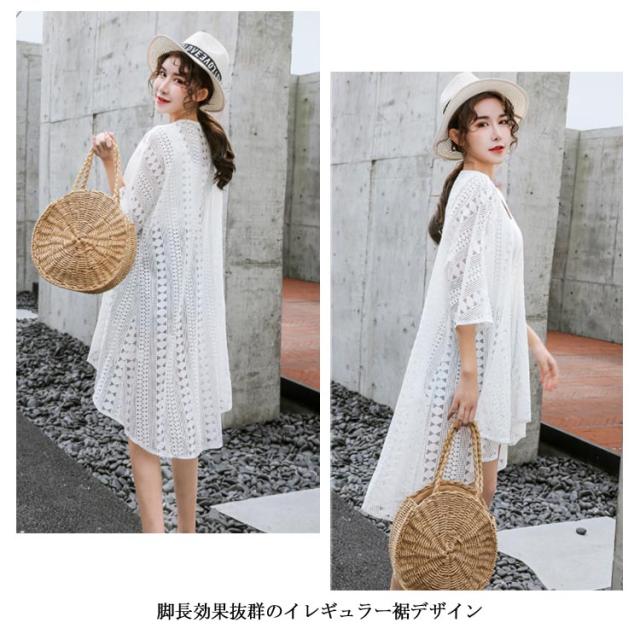 サマーカーディガン レース レースガウン レース刺繍 6分袖 透け感 レディース アウター ゆったり 膝丈 ロング セクシー ボヘミア風 レジャー リゾート 海デート 夏新作 イレギュラー裾 オシャレ 可愛い カーディガン 羽織 体型カバー送料無料