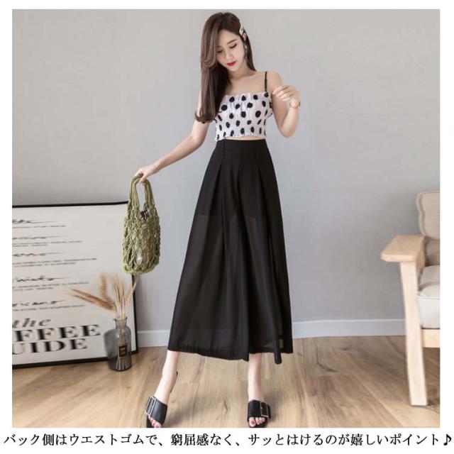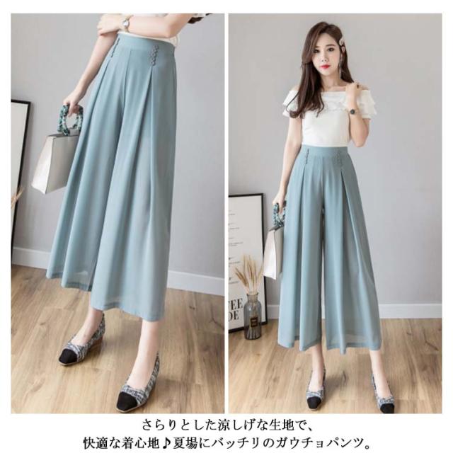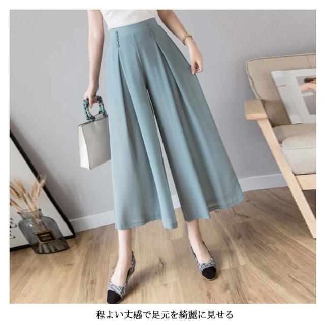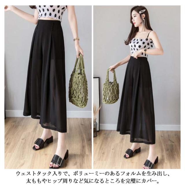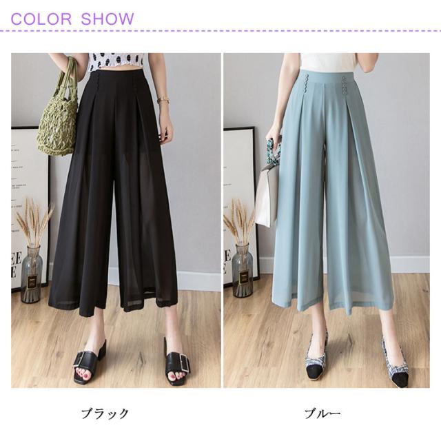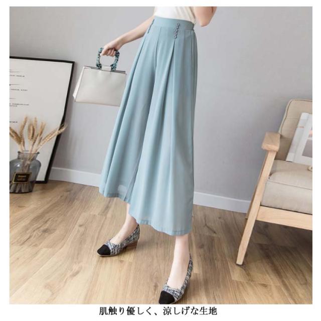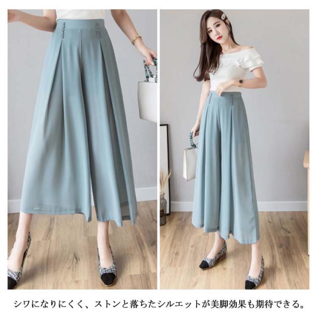 ワイドパンツ シフォンパンツ ガウチョパンツ レディース 夏 春秋 とろみ 涼しい パンツ クロップドパンツ 透かし 裏地付き インナーパンツ 大人 七分丈 ドレープ フレアパンツ ゆったり スカーチョ 20代 30代 40代 OL シワになりにくい送料無料