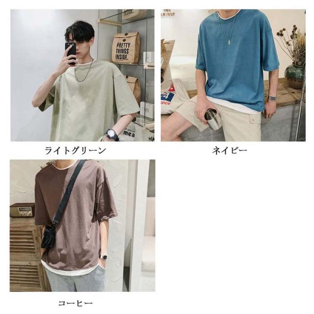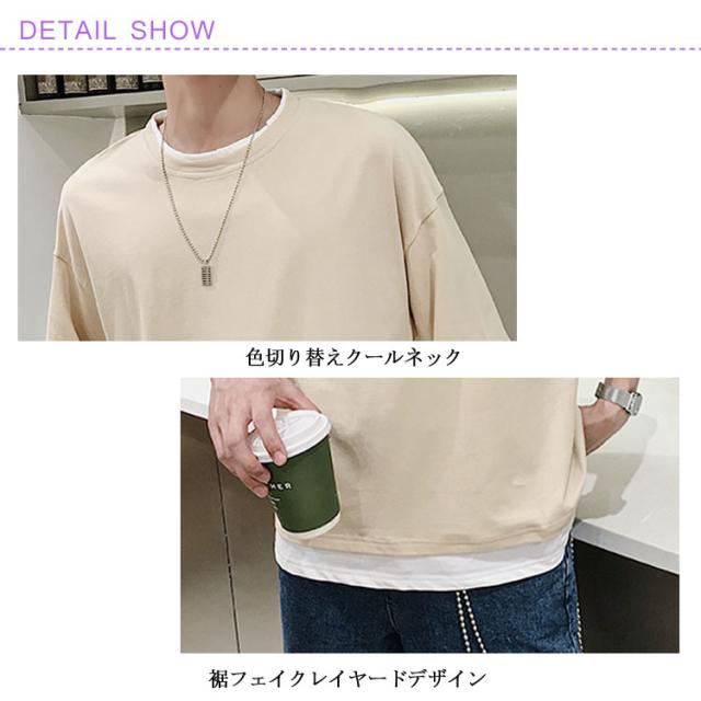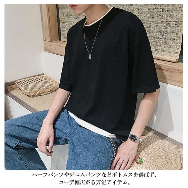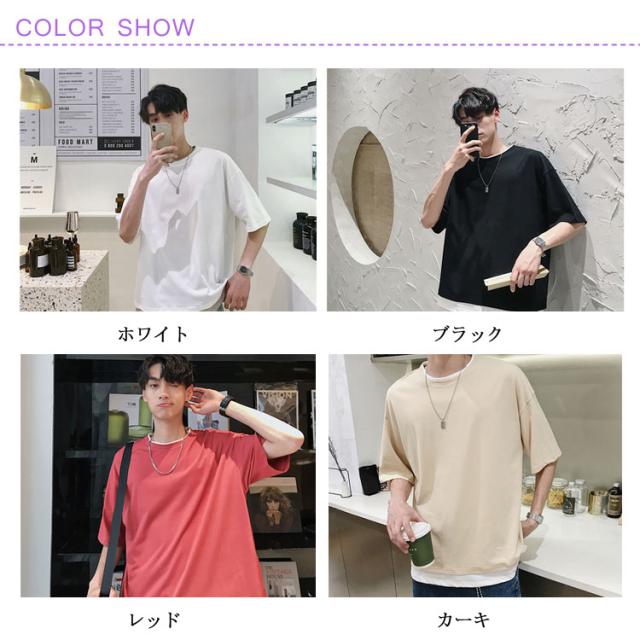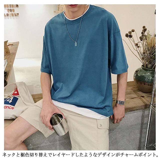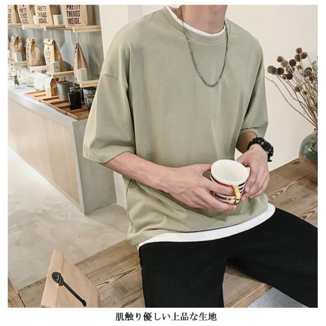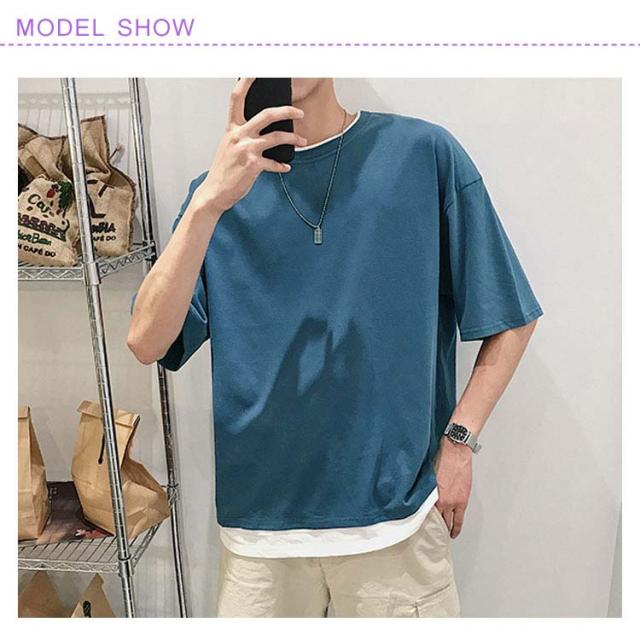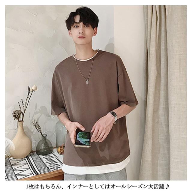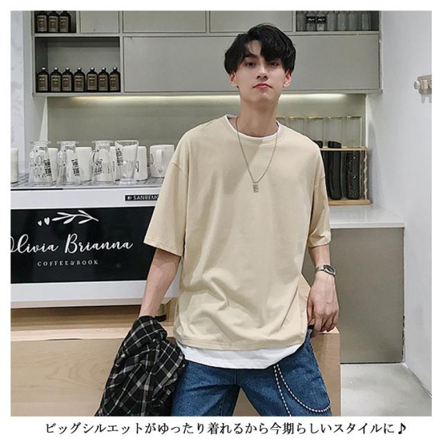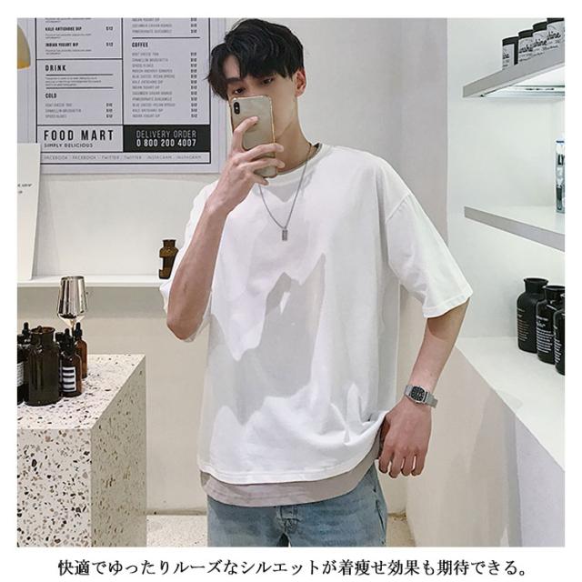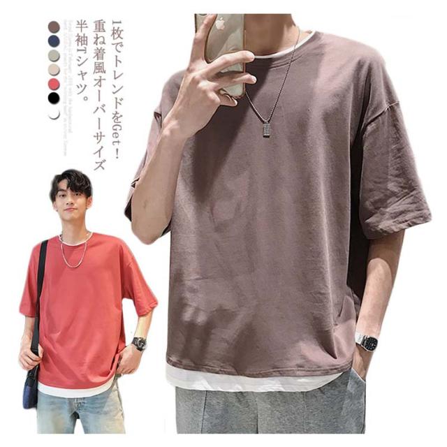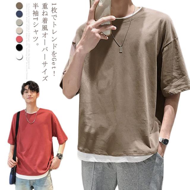 送料無料 重ね着風 Tシャツ 半袖Tシャツ レイヤード メンズ ビッグサイズ オーバーサイズ ゆったり ゆるT カジュアル お兄系 アメカジ トップス カットソー 半袖
