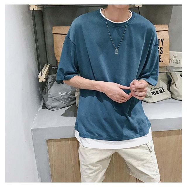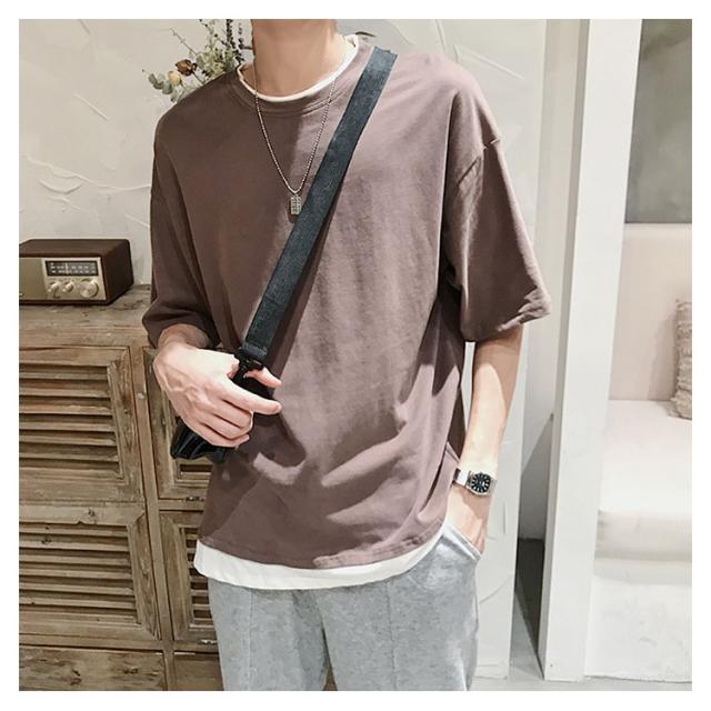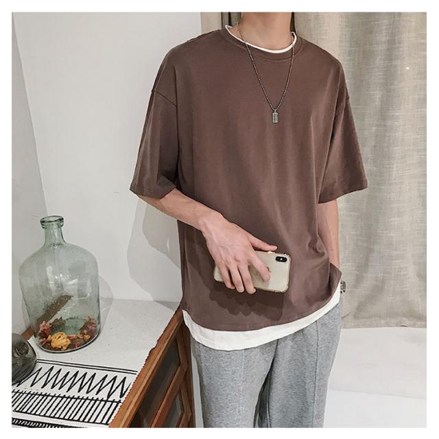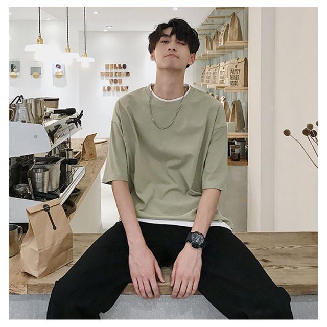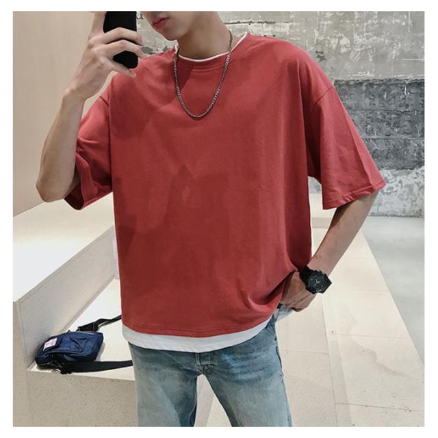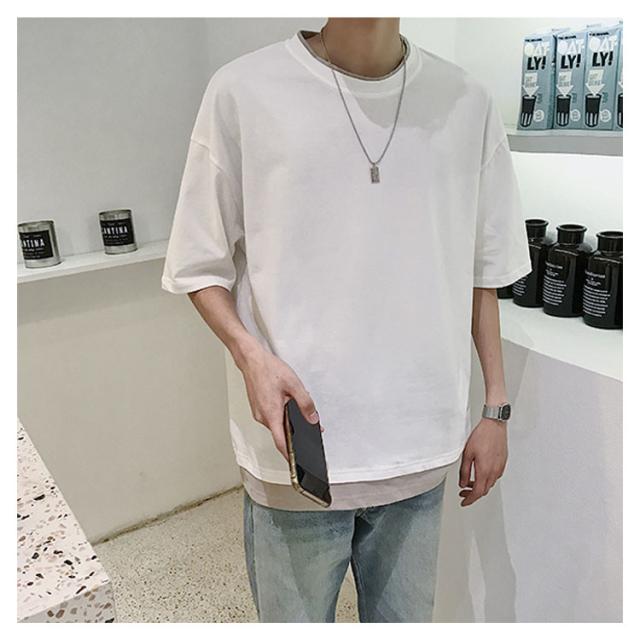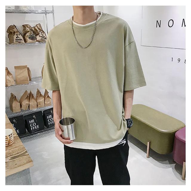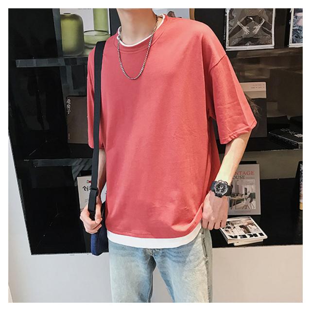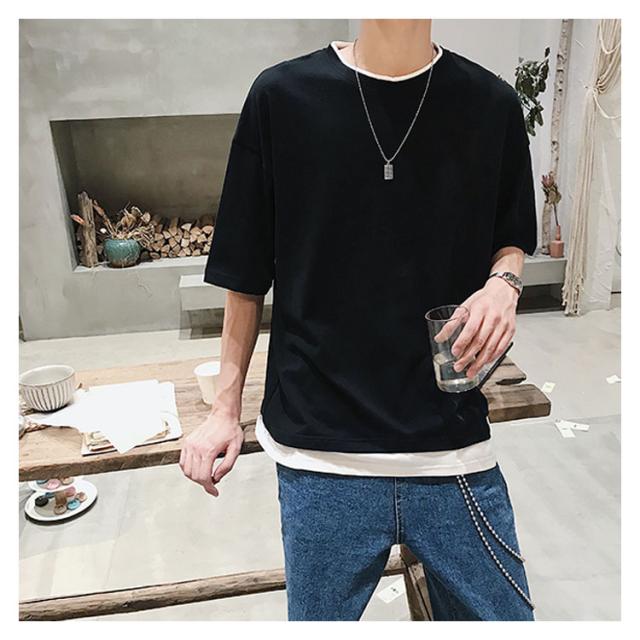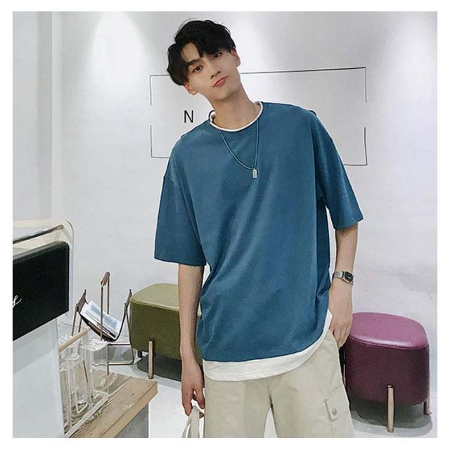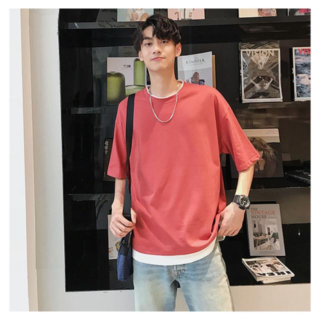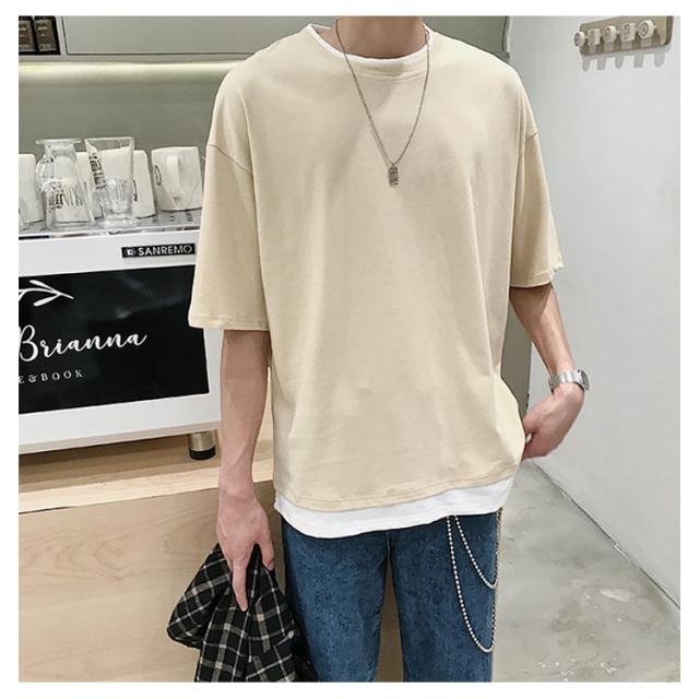 送料無料 重ね着風 Tシャツ 半袖Tシャツ レイヤード メンズ ビッグサイズ オーバーサイズ ゆったり ゆるT カジュアル お兄系 アメカジ トップス カットソー 半袖