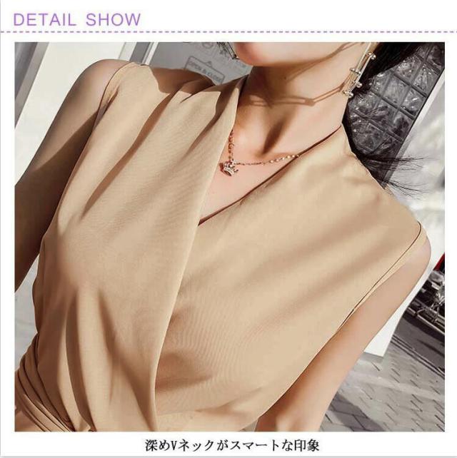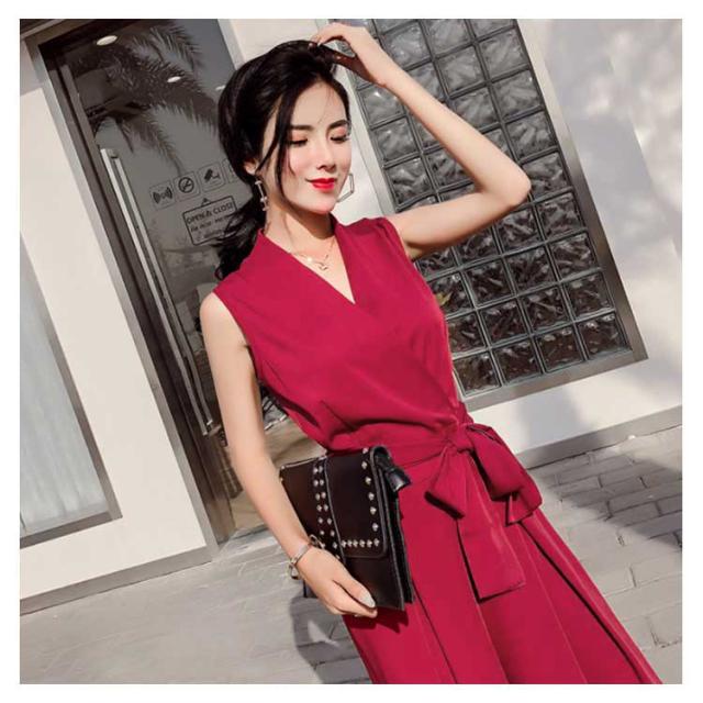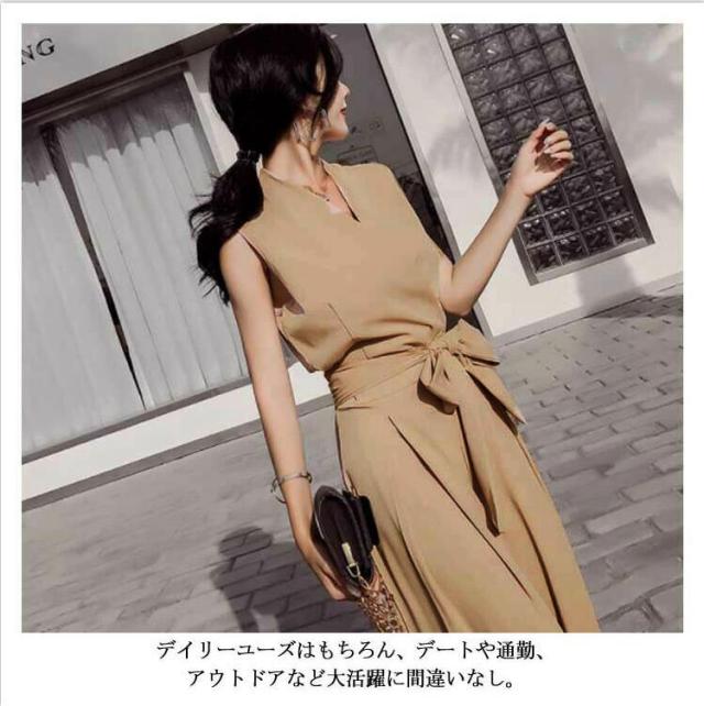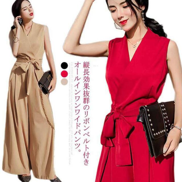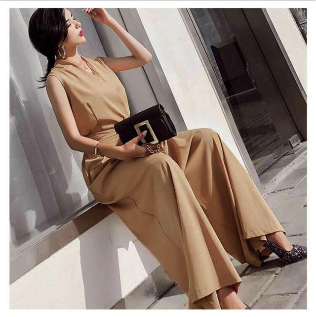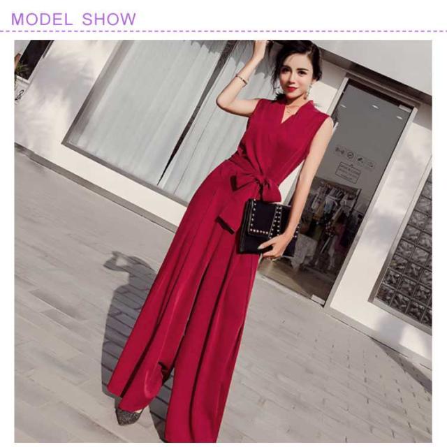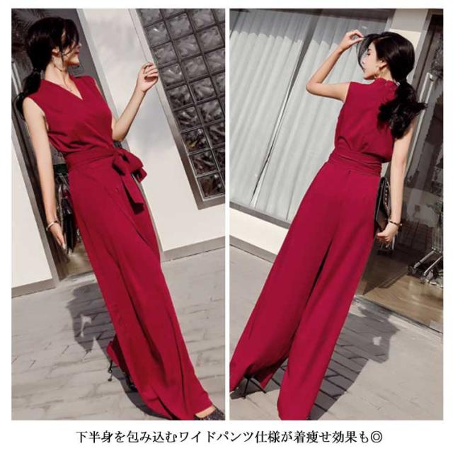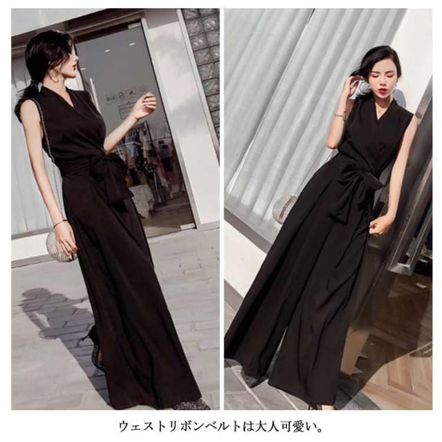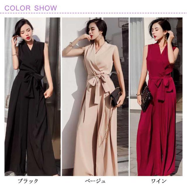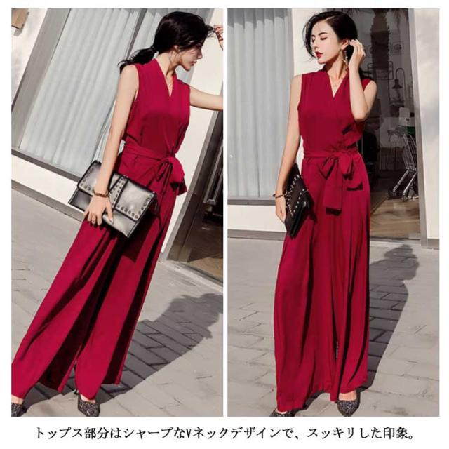 送料無料 オールインワン オールインワンワインパンツ レディース ワインパンツ ロング丈 Vネック ドレス ノースリーブ 夏 結婚式 レディース オーバーオール Vネック パンツ ワイドパンツ お洒落 優雅 ドレス お呼ばれ 体型カバー フォーマル