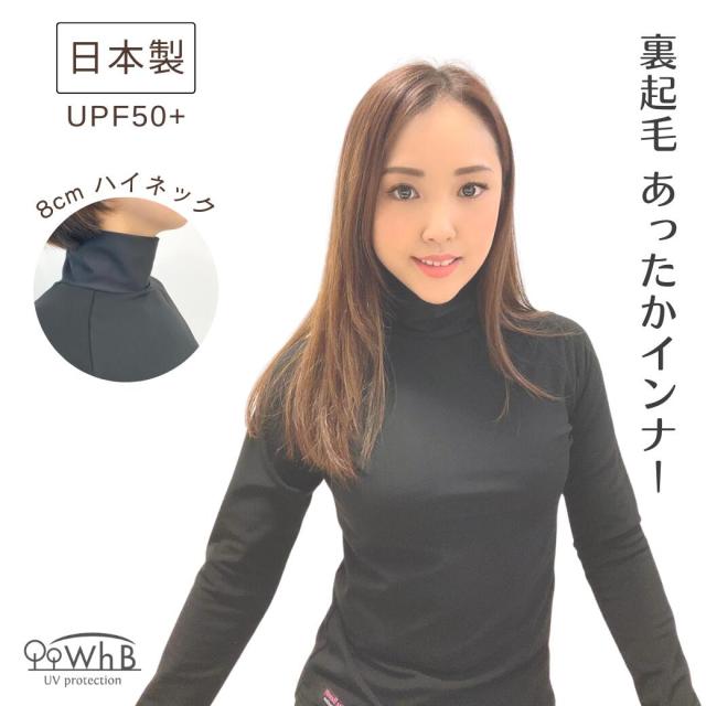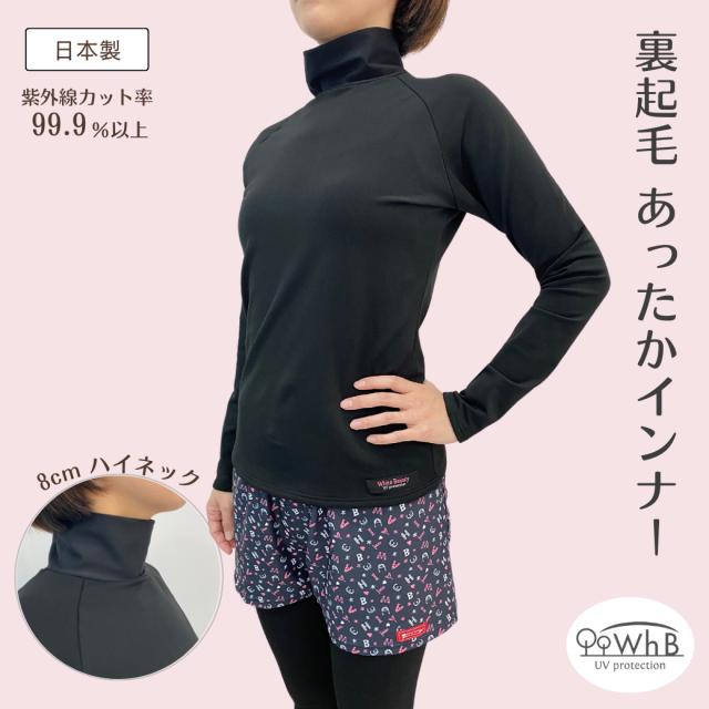 裏起毛あったかハイネックインナー 日本製 首元が立つ 防寒 インナー 長袖 テニスウエア ゴルフウエア レディース フィットネス 裏起毛 吸汗速乾 冬用 アンダーシャツ ストレッチ ブラック WhB ホワイトビューティー