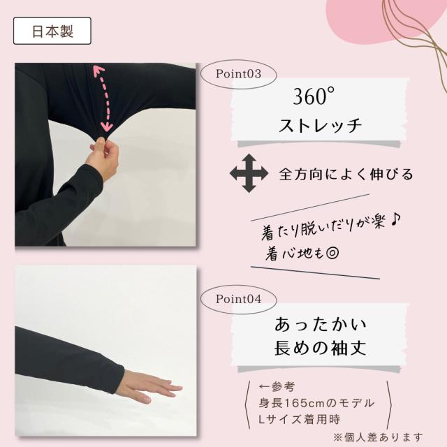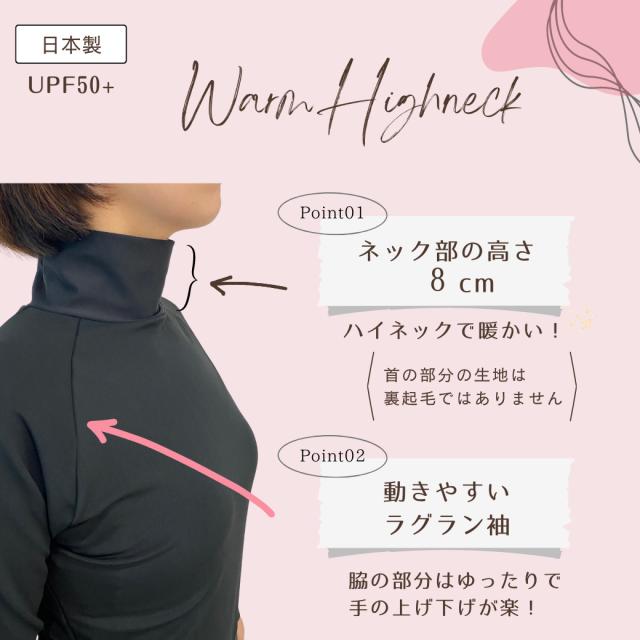 8cmハイネック 微細裏起毛 アンダーシャツ 長袖 防寒インナー 日焼け防止 テニス ゴルフ ストレッチ素材 ゴルフ テニス レディースウエア あったかウエア