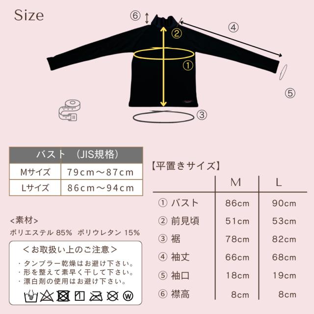 | Mサイズ:79〜87cm Lサイズ:86〜94cm(バストJIS規格) ※平置きサイズは画像参照 |