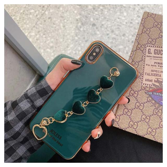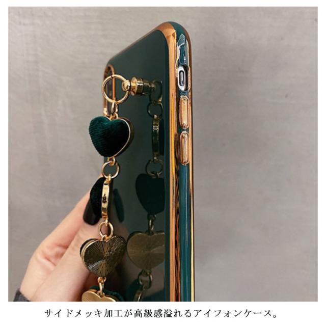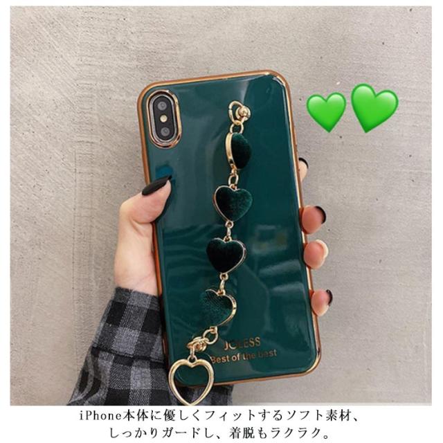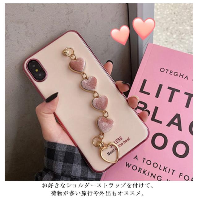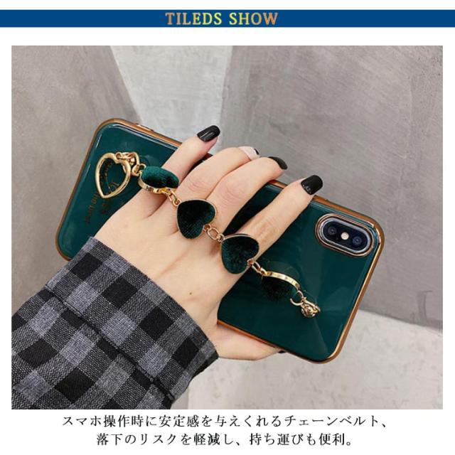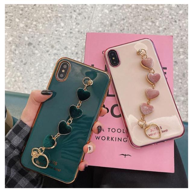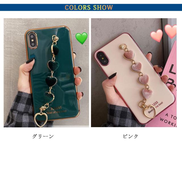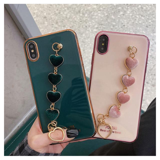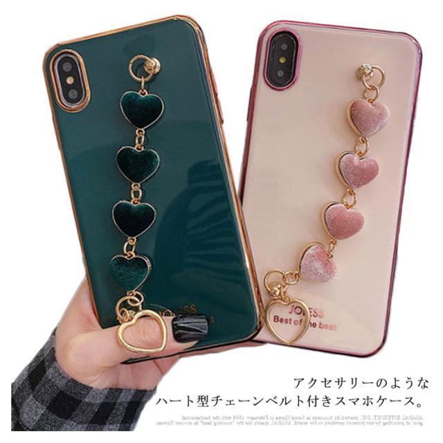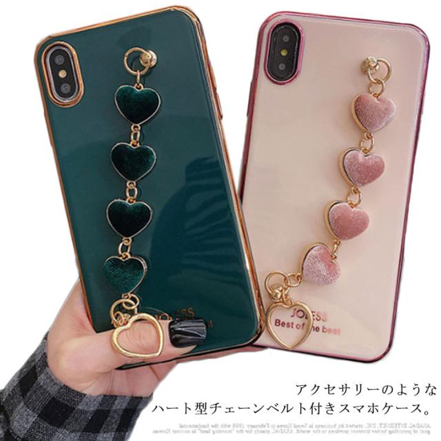 iPhone全機種対応 ケース 背面カバー チェーンベルト付き 落下防止 ソフトケース メッキ加工 送料無料 ハート スマホカバー iPhone11 XR XS XSMax 8plus 7Plus 6