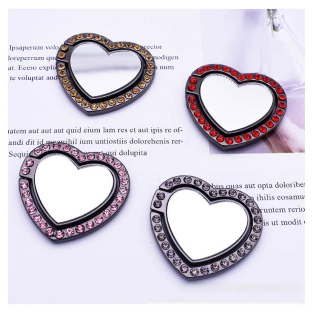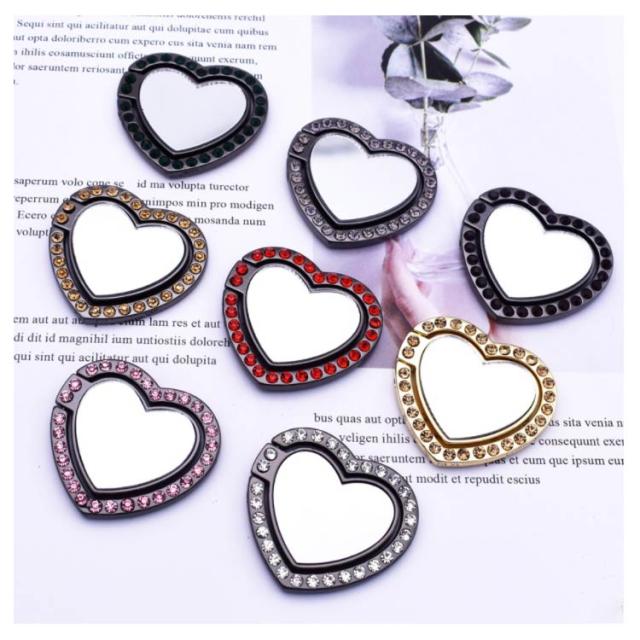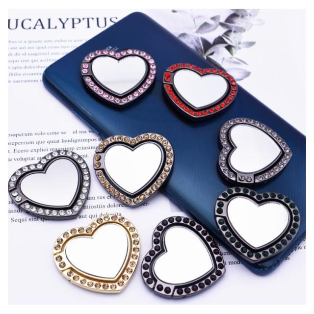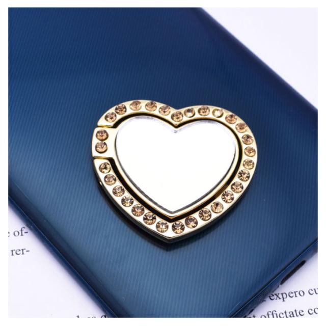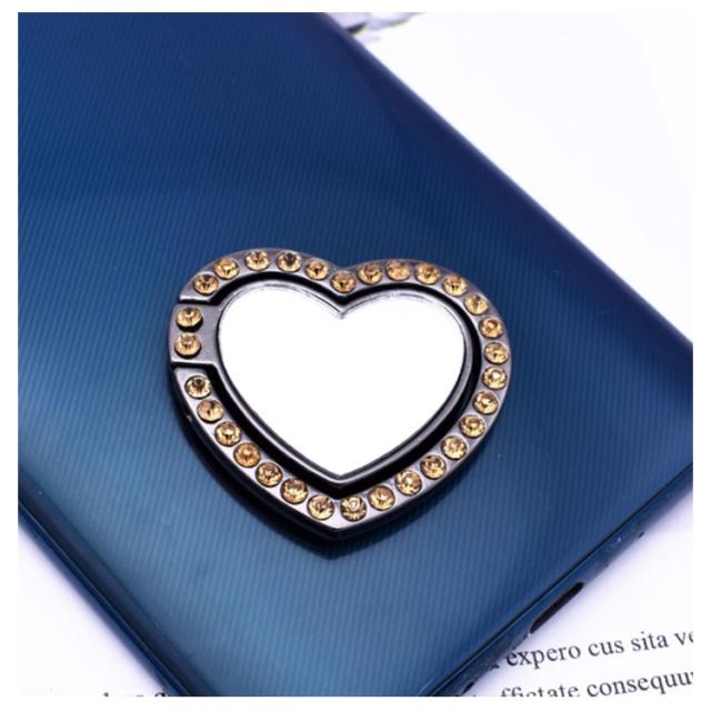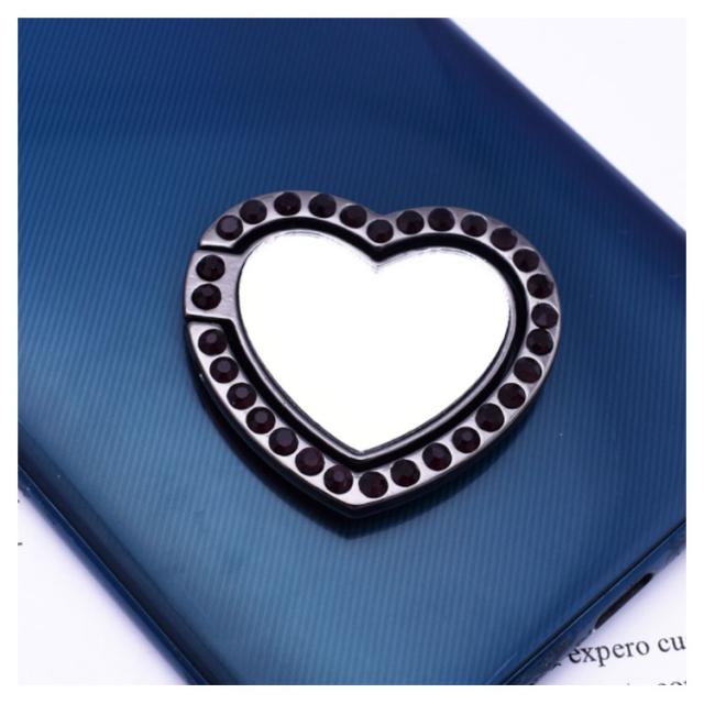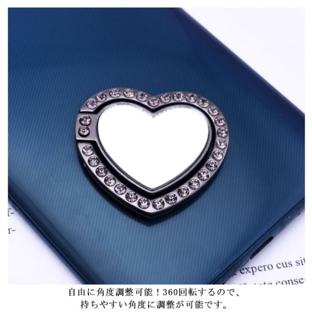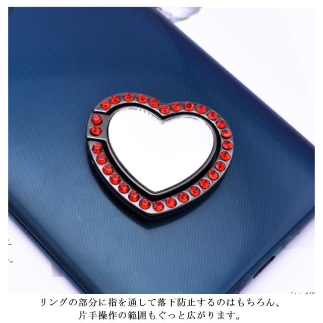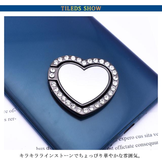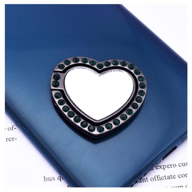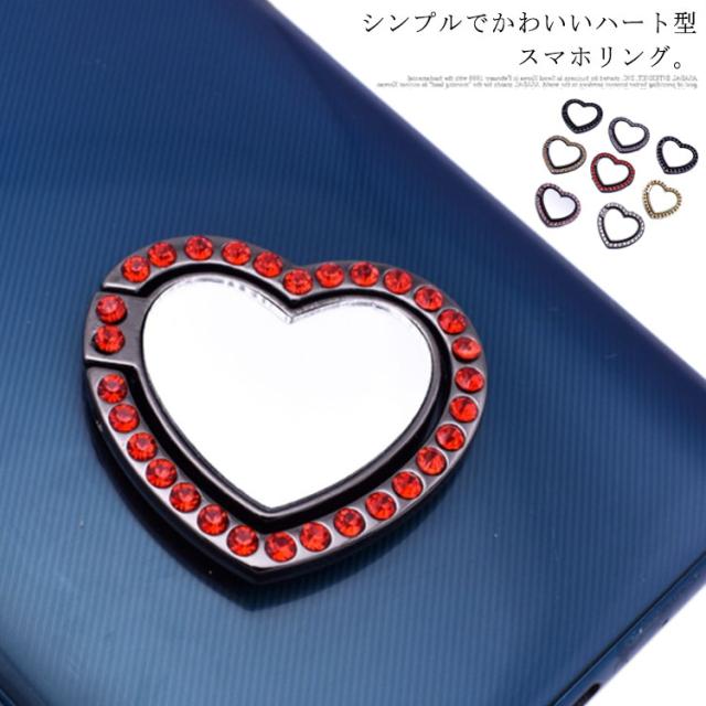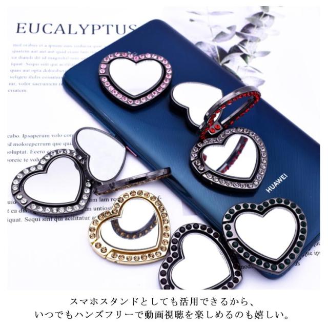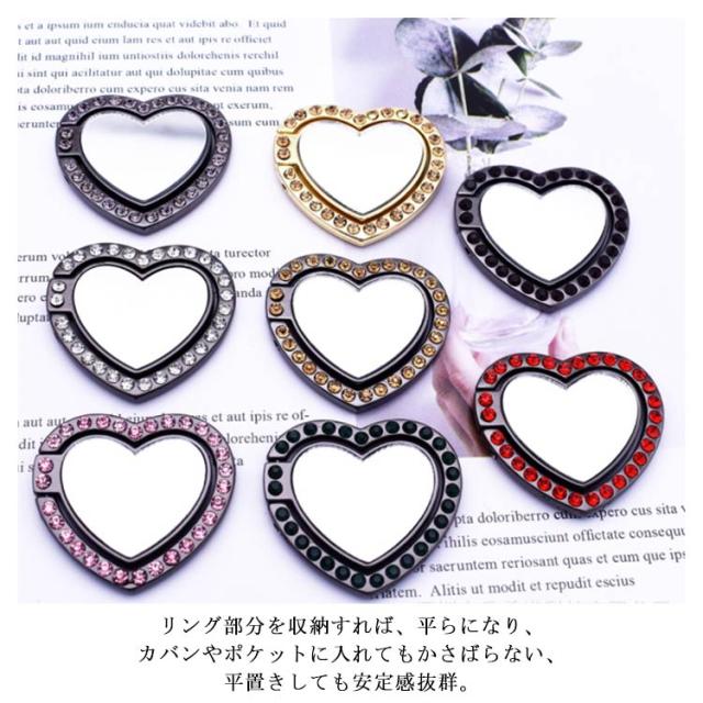 送料無料 ホールドリング スマホ リングホルダー スマホリング 鏡面 ミラー付き 可愛い ハート型 ラインストーン キラキラ フラット スタンド機能 落下防止