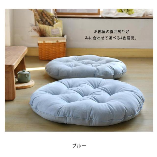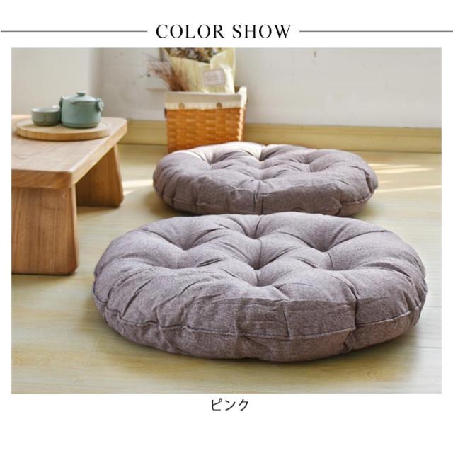 | おしゃれな丸型座布団! 適度な柔らかさ、座る時に、体圧を吸収、分散して身体を支えます。 縫製ポジショニングでぽこぽこしているのが特徴! お部屋の雰囲気や好みに合わせて選べる4色展開。 | |