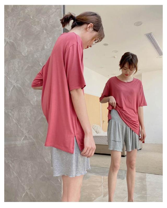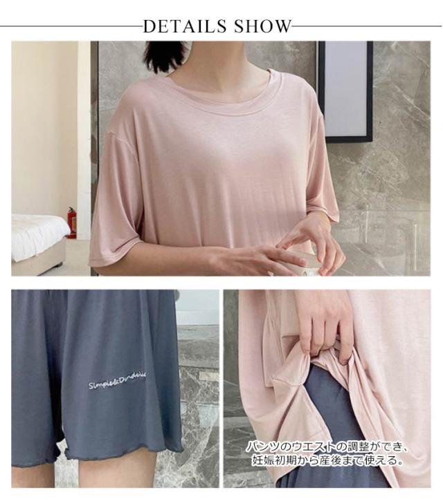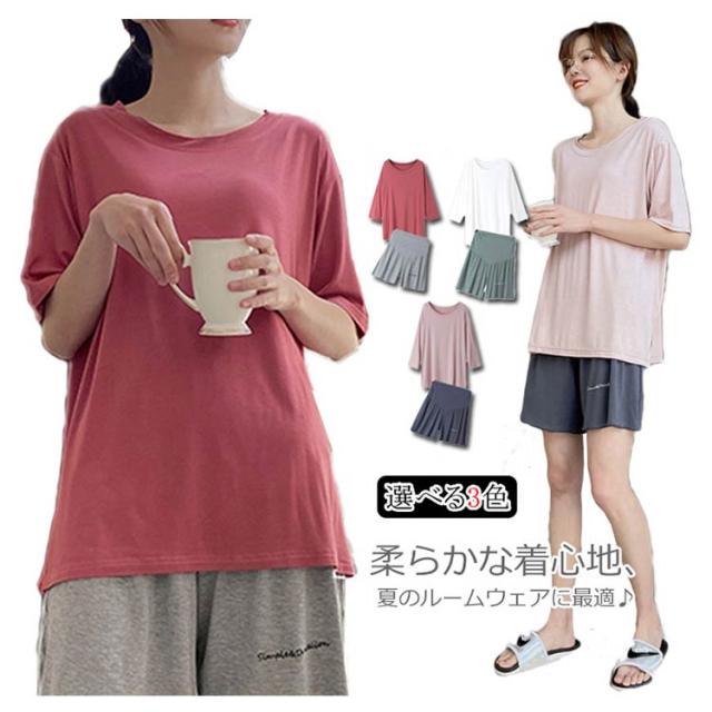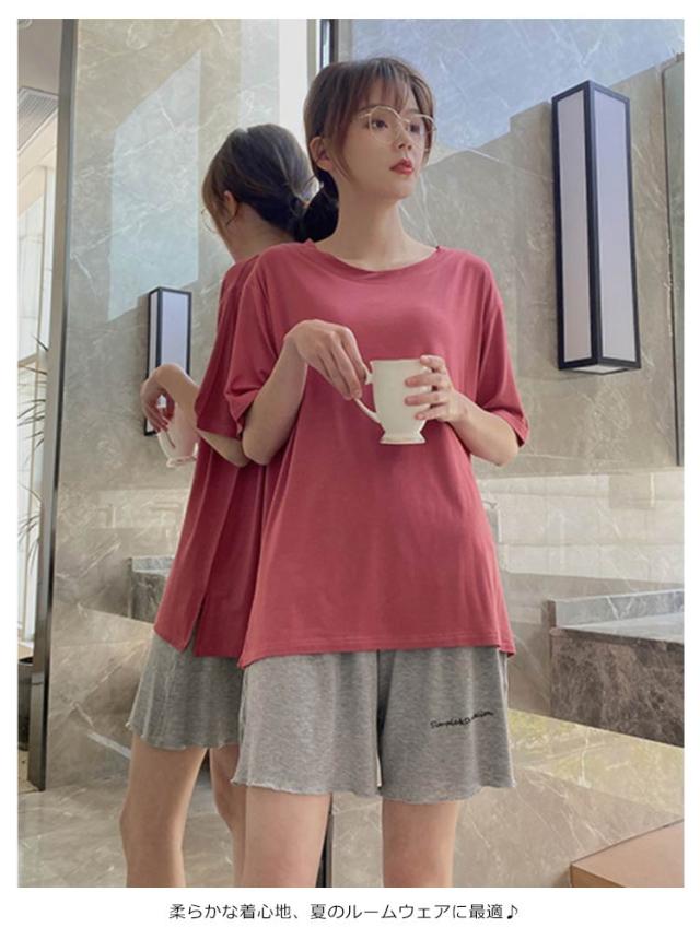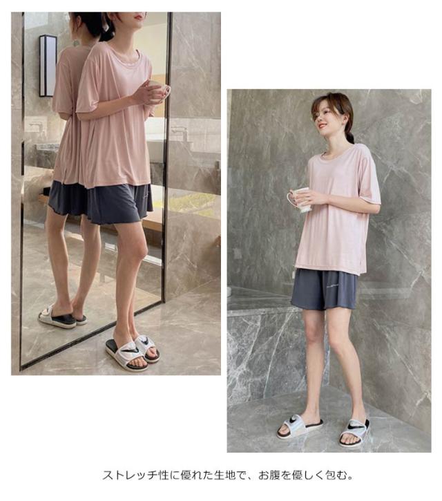 送料無料 ルームウエア パジャマ マタニティ 上下セット セットアップ マタニティ 妊婦 マタニティウエア 半袖 ショートパンツ ウエスト調整できる ストレッチ ゆったり 部屋着 寝間着 パジャマ 普段着 無地 ハイウエスト 薄手 カジュアル 夏新作