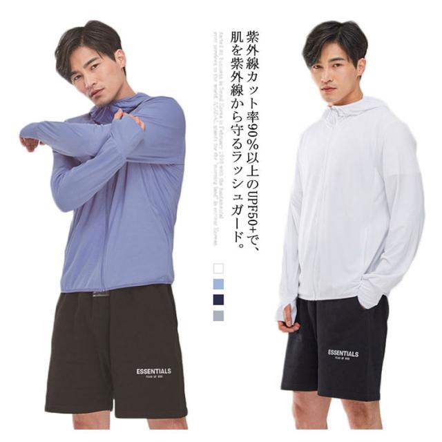 uvカットパーカー ラッシュガード メンズ ラッシュガード uvカットカーディガンの涼しさ 夏用 冷感 ひんやり 涼しい 接触冷感 UV ラッシュTシャツ 海 自転車通勤 水浴 水遊び 体型カバー 長袖