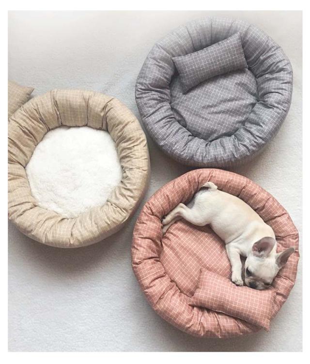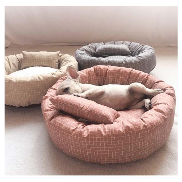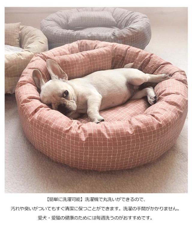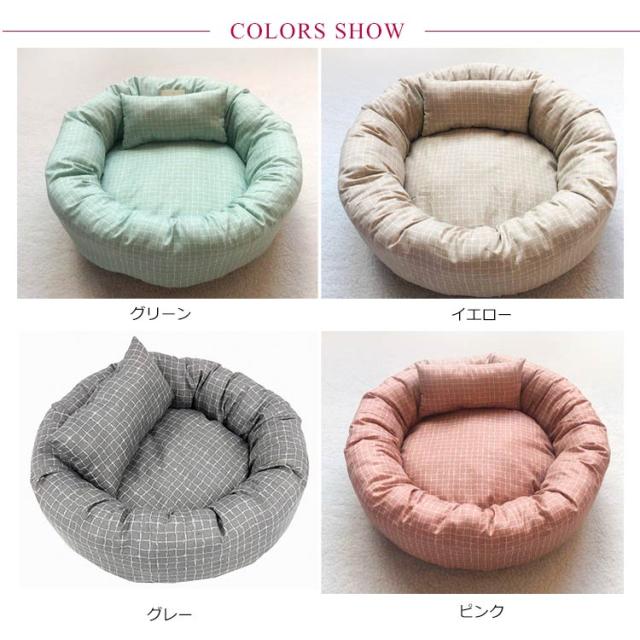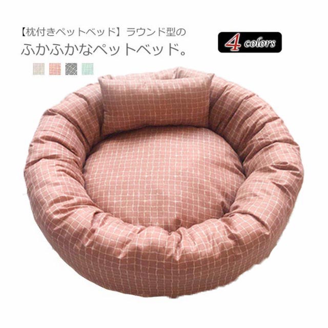 猫ベッド 通年 犬 ベッド 枕付き チェック柄 ラウンドベッド ネコ 丸洗い 洗える ペットベッド 円型 小型犬・猫用 耐え噛み ハウス 可愛い マット クッション リバーシブルクッション