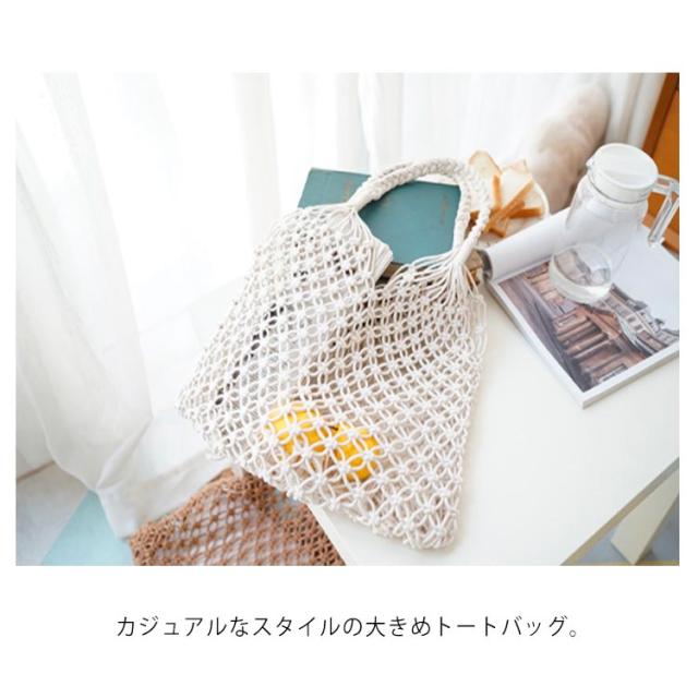 | カジュアルなスタイルの大きめトートバッグ。 柔らかな麦藁素材をネット状に編みあげたお洒落なデザインかごバッグ。 軽量なので、旅行グッズとしてもオススメ。 | |