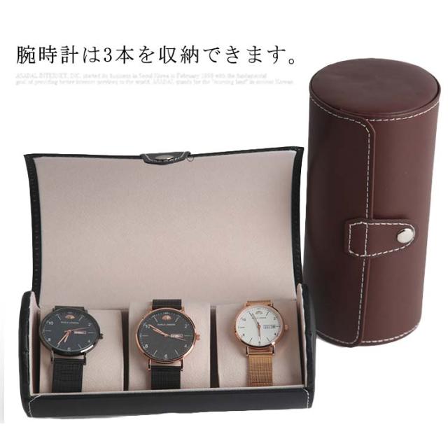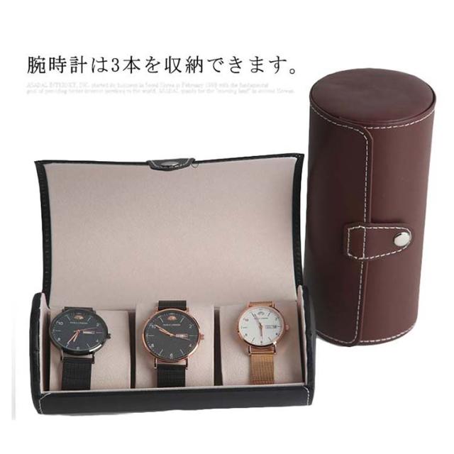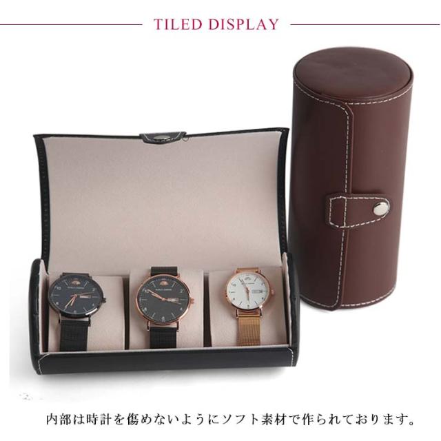 時計ケース 腕時計 収納ケース 3本収納 高級ウォッチボックス 腕時計ボックス ウォッチケース プレゼント ギフト インテリア コレクション ディスプレイ 展示 メンズ レディース おしゃれ 円形 puレザ 3本用