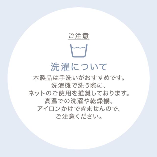 ※本製品は手洗いがおすすめです。洗濯機で洗濯の際に洗濯ネットのご使用を推奨しております。高温での洗濯や乾燥機、アイロンかけできませんので、ご注意ください。