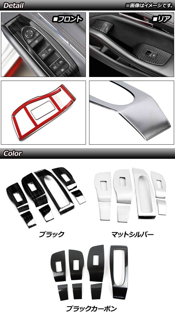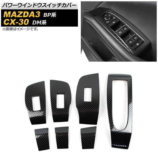パワーウインドウスイッチカバー マツダ MAZDA3 BP系 2019年05月〜 ブラックカーボン Aタイプ ステンレス製 入数:1セット(7個) AP-IT1238-BKC