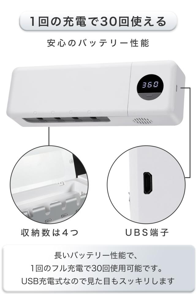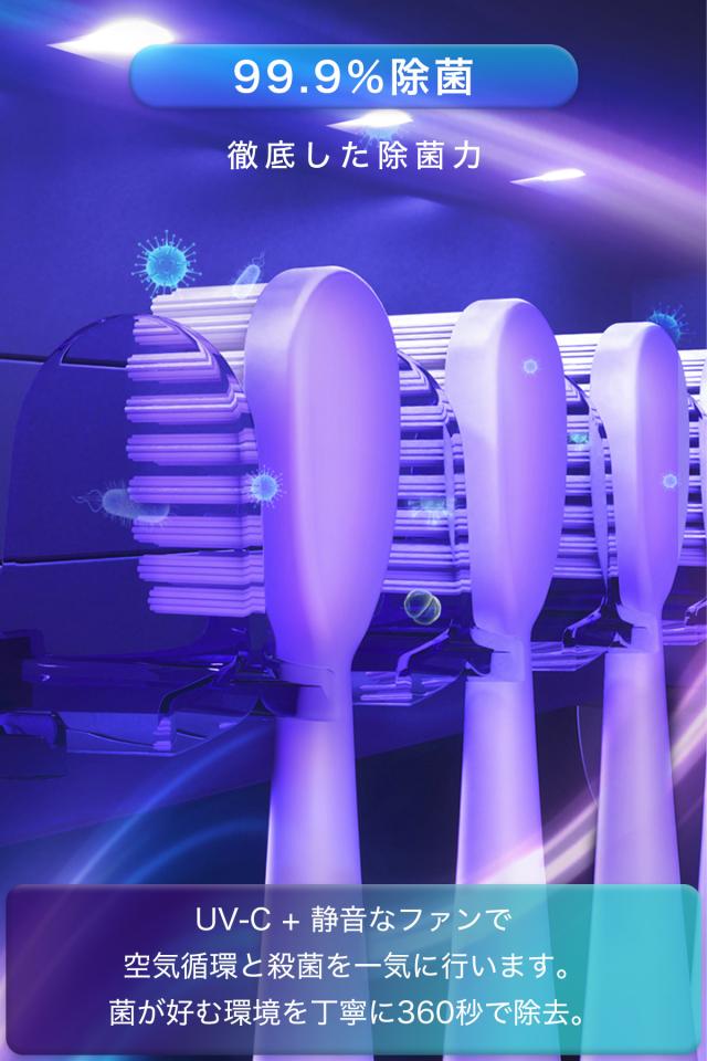 【UV除菌 空気循環】 歯ブラシ除菌器 壁掛け式 カビ防止 歯ブラシ収納ホルダー 除菌ケース 静音 除菌ケース UBS 充電式 収納便利 自動タイマー付き デンタルケア 電動歯ブラシ対応 簡単設置 貼るだけ 家族 4本対応