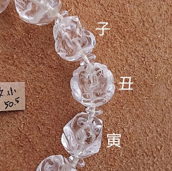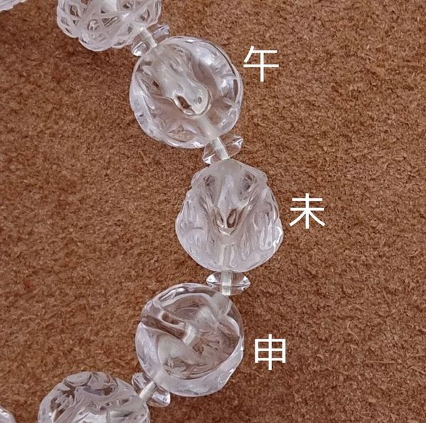 水晶に十二支それぞれを立体的に彫り込んだビーズの