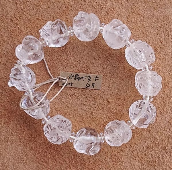 ブレスレット レディースアクセサリー アクセサリー ファッション 干支彫り水晶 L 水晶 十二支 立体的に彫り込み ビーズ 【送料無料】