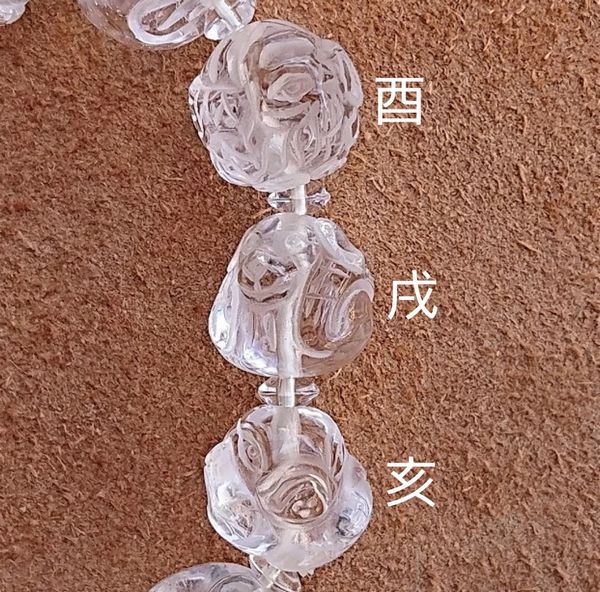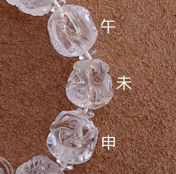 水晶に十二支それぞれを立体的に彫り込んだビーズの