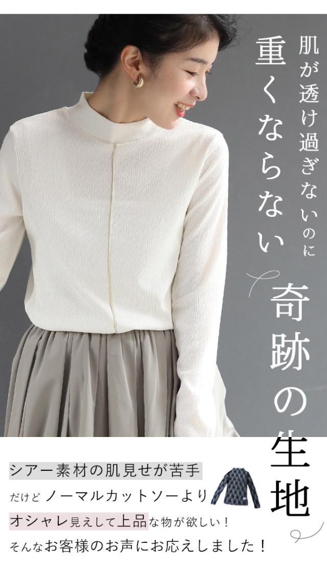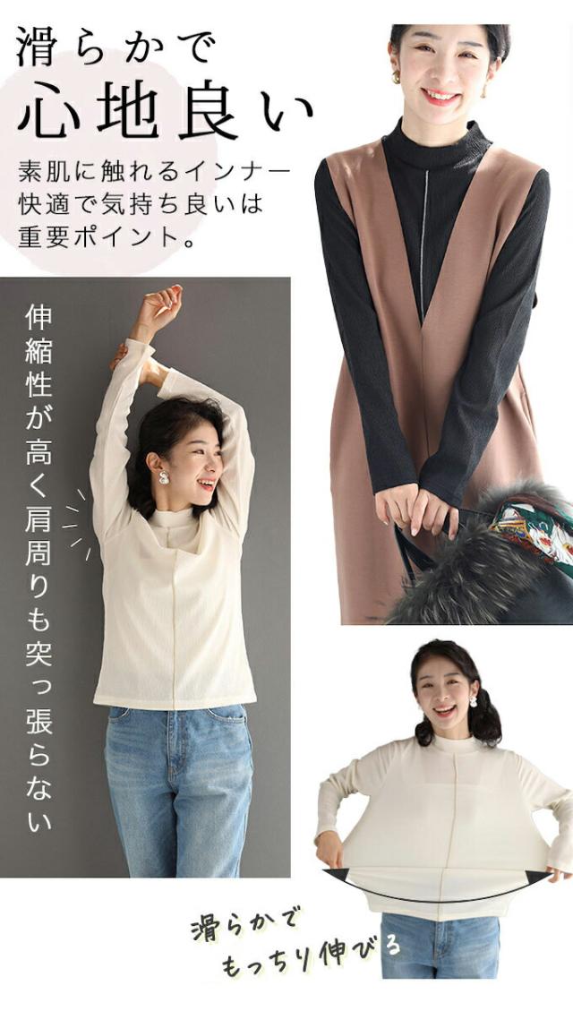 20251213sale 透け感苦手さん用 ちりめん インナー(S~2L対応)fzp00063 cawaii レディース カットソー 長袖 インナー レイヤード シンプル オフィス お呼ばれ きれいめ 透けにくい ハイネック タートルネック ロングTシャツ 長袖 ロンT 体型カバー 二の腕