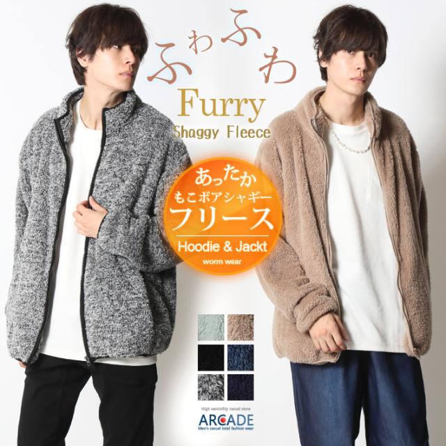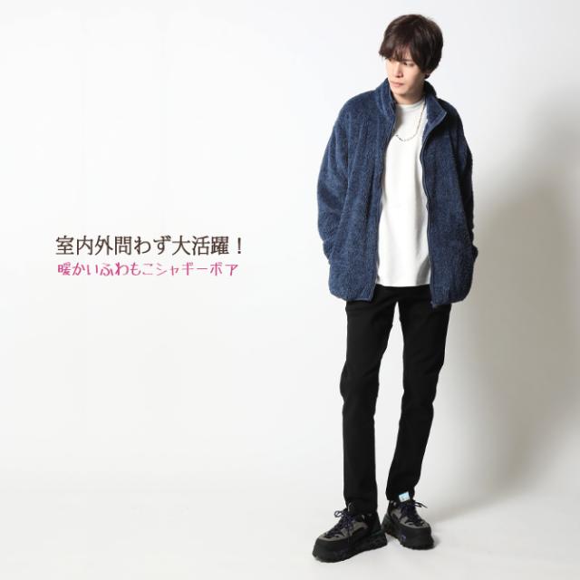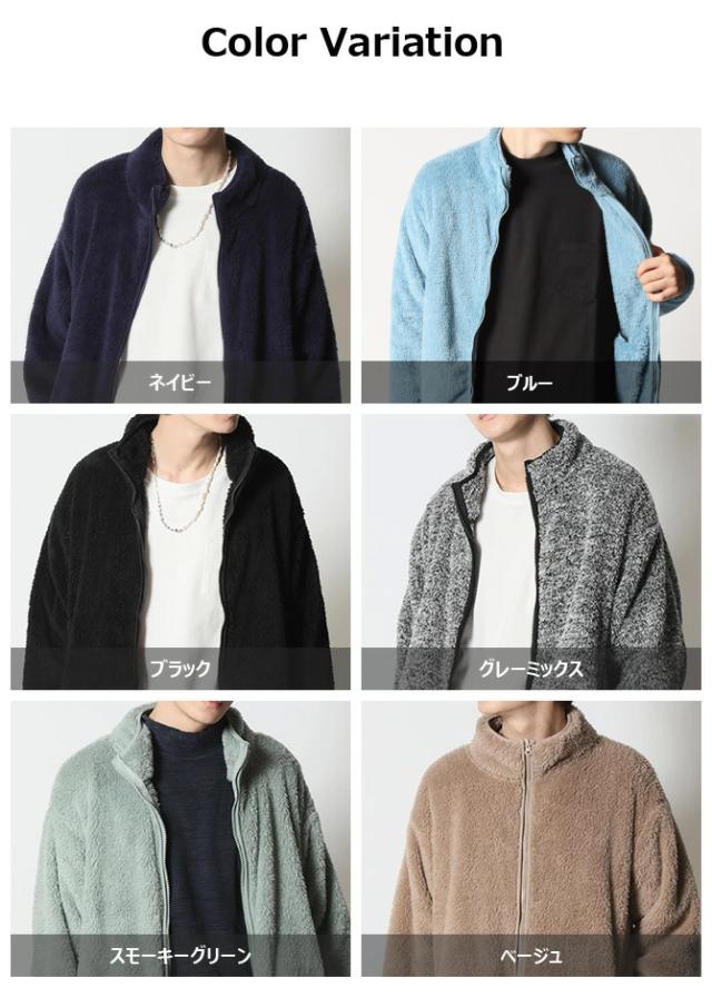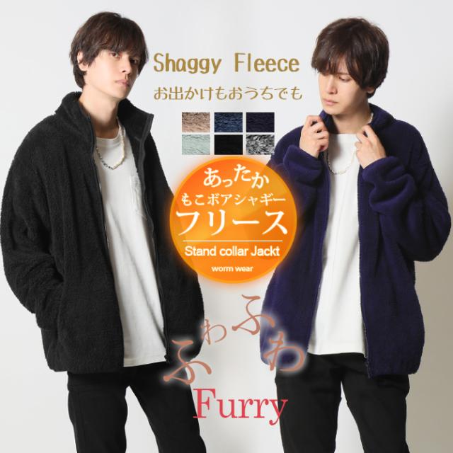 ボアブルゾン メンズ フリースジャケット 裏ボア 冬新作 ボアジャケット シャギー ジップブルゾン メンズファッション ファーリージャケット Shaggy Boa