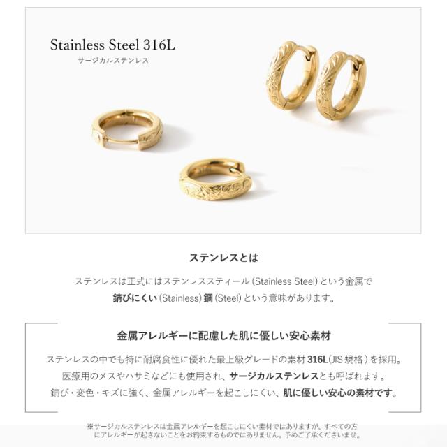 ※ステンレス316Lは金属アレルギーを起こしにくい素材ではありますが、すべての方にアレルギーが起きないことをお約束するものではありません。予めご了承ください。
