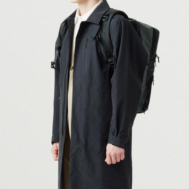 ライフシーン、ビジネスシーンにも活躍する防水仕様のコート。Gore Performance Technology3層構造の素材を採用。ベンチレーションホールを脇下に搭載することで、衣服内の蒸れを軽減。襟元にタブを搭載したことにより、襟を立てた状態での固定を可能とし、防風性も高めた。前身頃には、小物収納に便利な3ヶ所に止水ジッパーポケットを搭載。インナーポケットの内部には、抗菌素材を採用