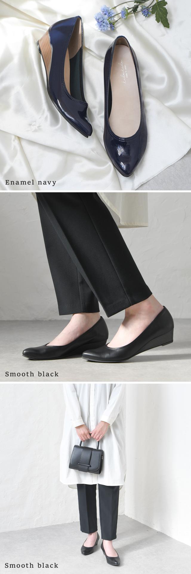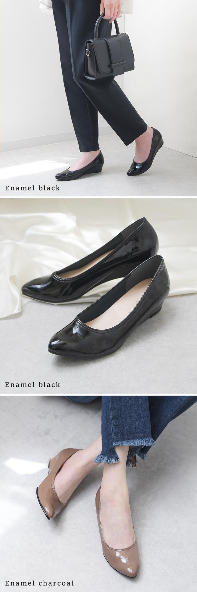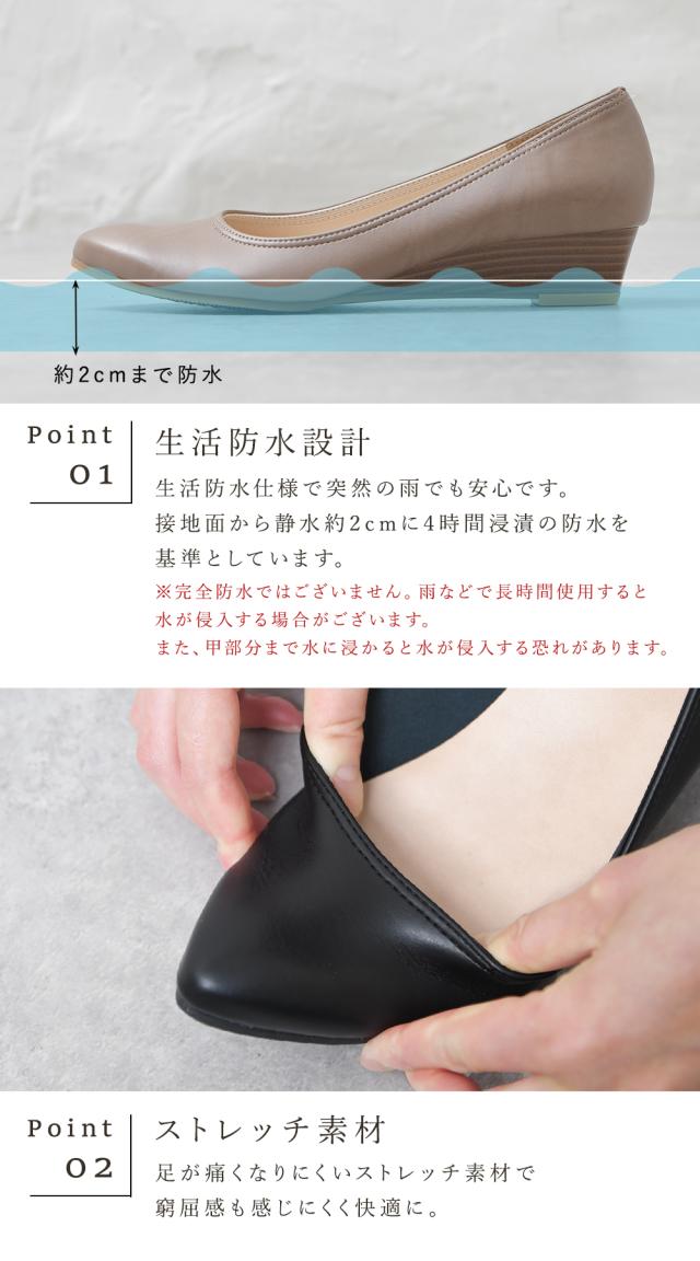 パンプス ウェッジソール ポインテッドトゥ 痛くない 柔らかい 長時間 疲れない 歩きやすい 走れる 軽量 レイン フォーマル スーツ 仕事用 通勤 立ち仕事 就活 冠婚葬祭 結婚式 日本製 大きいサイズ 黒 ブラック きれいめ おしゃれ かわいい 春新作