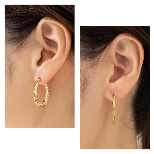 繊細なハワイアン柄が美しいオーバルフープピアス。