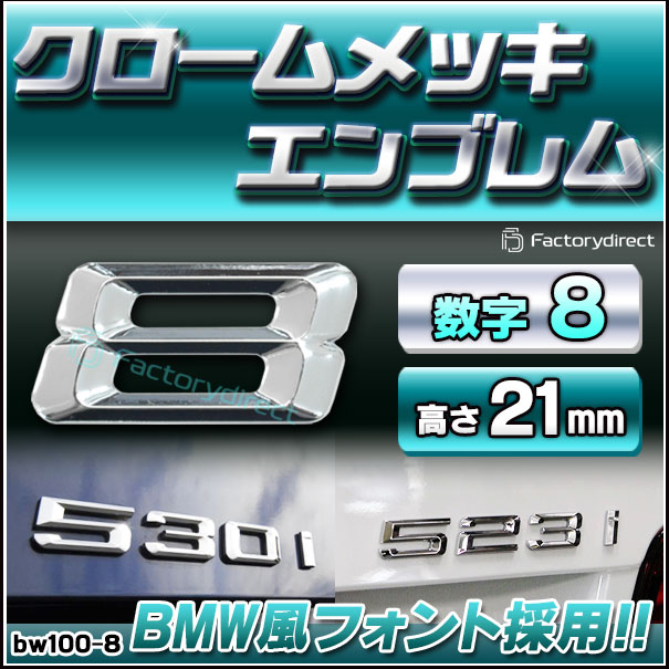 emb-bw100-8 (数字=8) アルファベット 3D クロームエンブレム BMW風フォント 高さ21mm 両面テープ付 (カーアクセサリー カスタム パーツ 立体的 ステッカー カーエンブレム クロームメッキ クロームパーツ ドレスアップ 車 シール オシャレ)