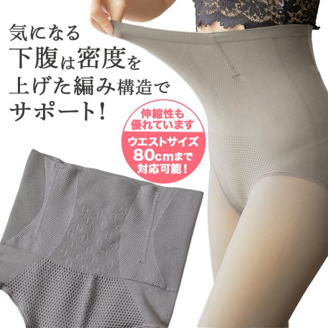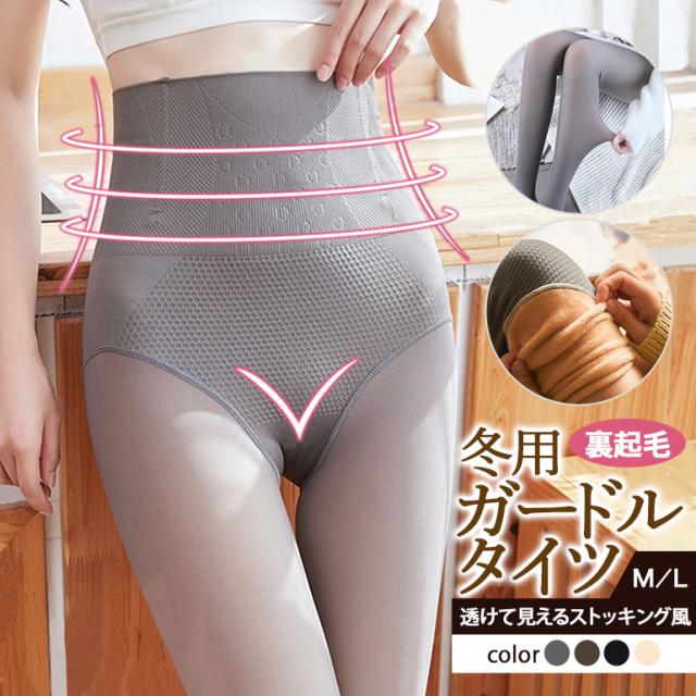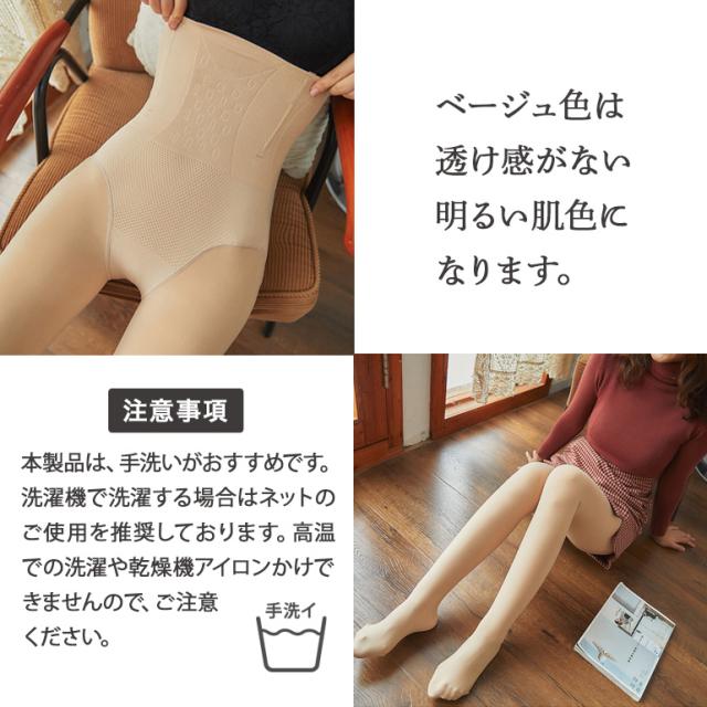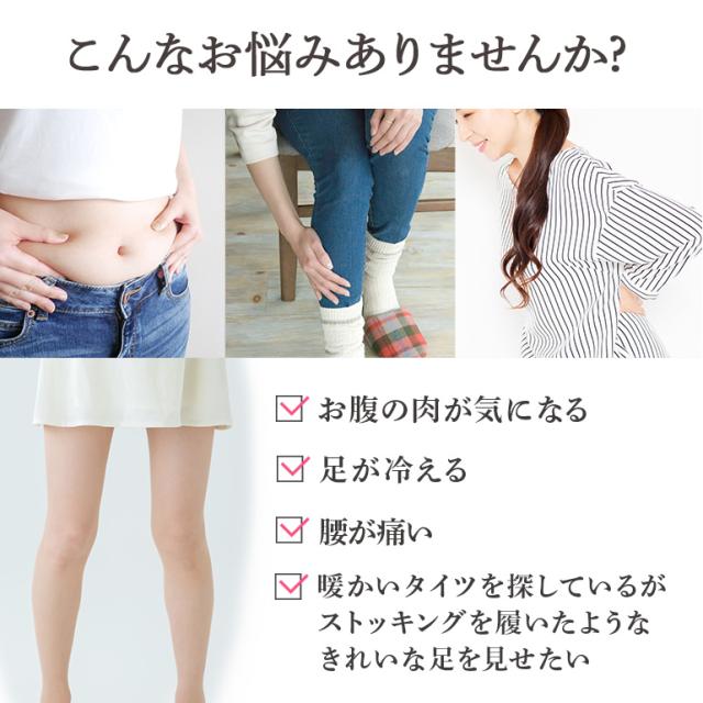 ・くびれ補正ガードル、暖かい腹巻、下腹を押さえる高密度編み構造の機能が揃った裏起毛タイツ。