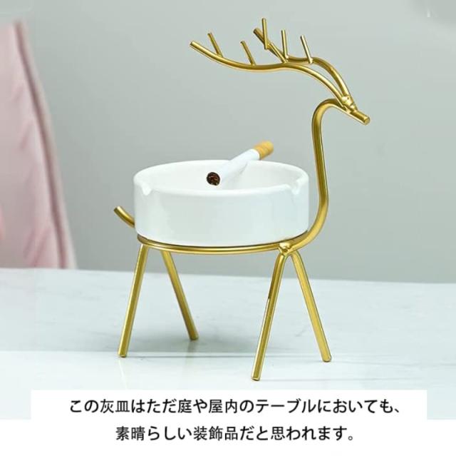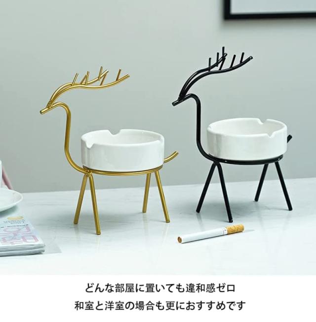 ★【ユニークなデザイン&安全性高い】灰皿は優れた質感の陶器で手作りしており、添付した装飾用のシカは活発的に生き生きしています。両者をあわせて、どこでご利用いただいても深い印象を人に与えられます。また、シカは灰皿を乗せて卓上から行っての安全距離を確保し、さらに安全性を高めます。それだけではなく、3本のタバコを同時にしっかりと固定できる漕もあります。また、灰皿の中に少し水を溜めて使えると、更に消火機能大アップします!とても便利で美観的なグッズです。