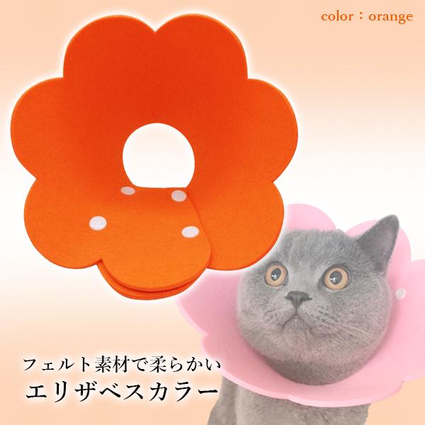 エリザベスカラー ペットグッズ 軽量 ソフトタイプ エリカラ 犬 猫 かわいい お花 オレンジ Mサイズ