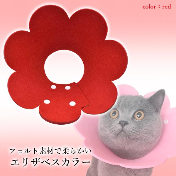 エリザベスカラー ペットグッズ 軽量 ソフトタイプ エリカラ 犬 猫 かわいい お花 レッド Mサイズ