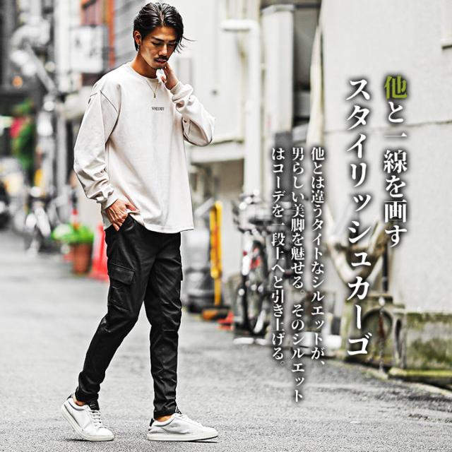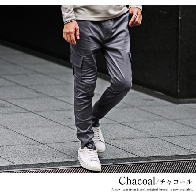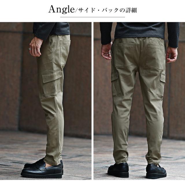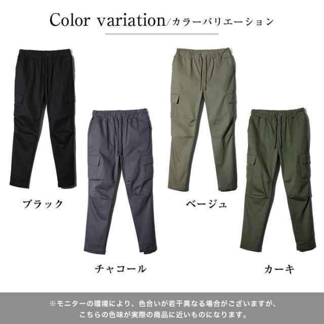 カーゴパンツ メンズ スリム ウエストゴム イージーパンツ メンズ ボトムス メンズ カーゴパンツ メンズ 美脚 カーキ ブラック チャコール ベージュ 細身 タイト ストレッチ 秋 秋服 秋物 秋冬 メンズファッション ちょいワル お兄系 オラオラ系