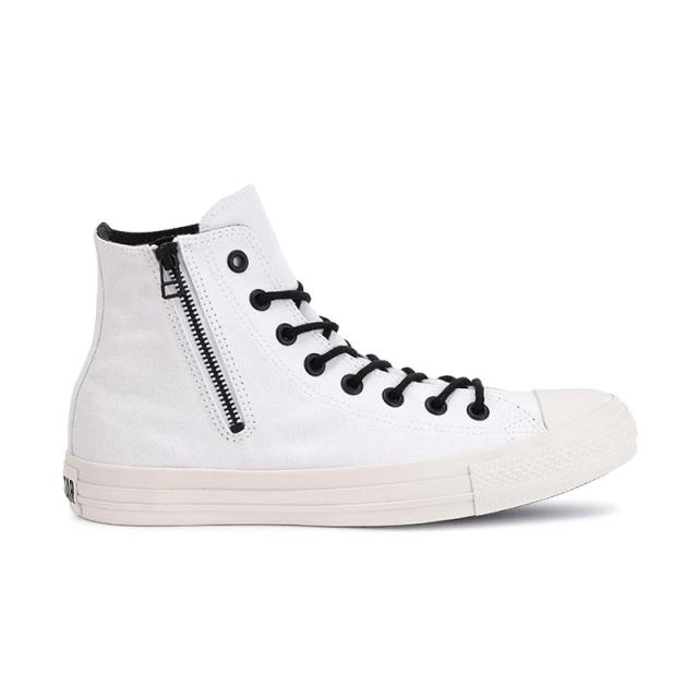 丸紐のコットンシューレースやライニング、アウトソールやハトメ、着脱をサポートするジッパーにブラックを採用したオールスター。